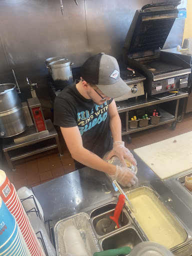 The girl that was working on my order was preoccupied with conversation and banter with other employees behind the counter. Every time I tried to tell her what I wanted on my homewrecker she would interrupt me to continue her conversation. They were laughing and even cursed at one point where one of the other team members tried to remind them that there were customers around. Instead of focusing on my order she kept trying to finish wrapping the homewrecker before I was done with the items I wanted on it. She couldn't wrap it up so she grabbed another tortilla and dumped the contents of what she prepared for me on to that minus about a third of it. She wrapped it in the aluminum foil and set it down on the counter. I stood there for nearly 5 minutes before somebody finally rang me up.