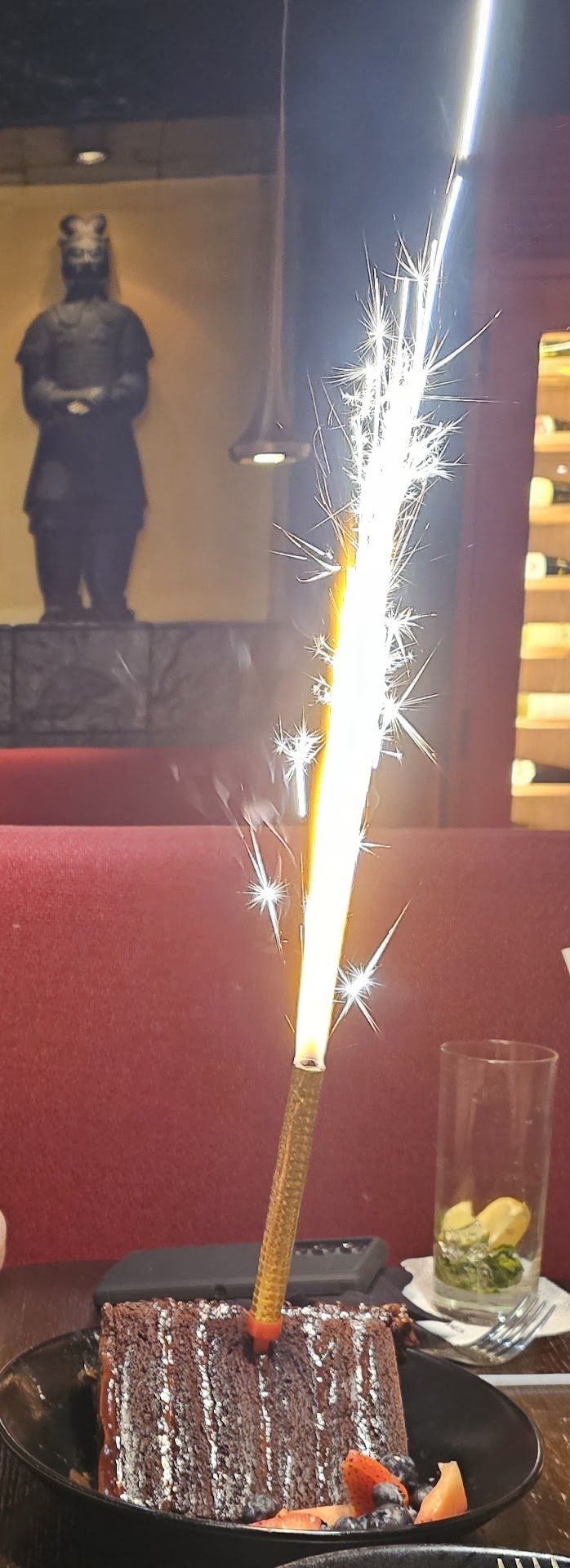 Took my fiancé here for his birthday and we were both pretty disappointed. I called ahead to see if they do anything special for birthdays and the girl said they offer a free appetizer or dessert. I went ahead and made a reservation online noting it was for a birthday. Although we hit traffic and got there about 30 minutes late but we still had plenty of time according to their hours. Upon arrival there was no one at the host stand and we stood there for 5 minutes trying to get someone's attention although clearly visible to the bartender and 3 servers. We ended up calling and what seemed like the manager answered, told him we've been waiting and a waitress came over immediately. She was apologetic stating they were short staffed and had a birthday celebration and so everyone was in the back.. We were seated in the middle of the large room which seemed kind of awkward so we requested a booth. The waiter was extremely friendly and courteous although he seemed in a bit of a rush to greet and go. We were able to atleast give him a drink order before he walked away. He informed us they were out of all their Asian beers (4 kinds) which kind of bummed out my fiancé as he was looking forward to it. I ended up with a Peach Boba drink with no bobas and no explanation, I'm guessing they were out too and my fiance got the Pear Mojito which didn't seem like there was any alcohol in it at all for $13.50. We were quick to decide on food and for appetizers got the chicken lettuce wraps and the new popcorn chicken. The server was glad to offer a variety of dipping sauces for the popcorn chicken. The popcorn chicken appetizer was $19 and the portion was fairly small(maybe a pint glass) although very crispy and pretty delicious. The lettuce wraps were also very tasty and the lettuce was fresh. For our entrees we got the Mongolian Beef and Orange Chicken dishes which both had very nice presentation and flavor. The chicken was again crispy and the orange flavor really came through. The beef was juicy, tender and had a delectable sauce. While we were there I took notice to the 6 other tables of parties of 3-5 and one larger table of 6-7 people that looked like the birthday celebration. I noticed the bartender only had one guest but the restaurant wasn't really that busy for a Tuesday night. At the end of the bar was a tray with a bunch of dishes and napkins that sat there for our entire meal, it looked messy and unkempt. While we were eating our entrees I noticed a manager come out from the back who hadn't been on the floor as of yet, he went immediately to do inventory of the wine bottles with his eyes glued to his tablet. The server did check in on us to see how our food was. The manager began having a conversation with our server right by our table about an interaction with a woman that I really wish was just kept off the restaurant floor. The manager went ahead to bus a table and sweep without really addressing any of the active tables still dining. As we were there for a celebration I expected a different experience. Towards the end of our meal we were asked if we wanted dessert to which I said no thank you, we were pretty full. I informed our server of my fiancés birthday and he was ecstatic for him which was pleasant, he then said I've got something special for you and proceeded to bring out a piece of chocolate cake with a giant sparkler in it. Of course we were happy to celebrate but I was a bit confused. The bill was presented and the cake was on the house which was nice but I was a bit boggled as we would have preferred one of our appetizers on the house. Additionally the salad wrap appetizer is advertised in front as a $10 special and we were charged full price. After speaking with our server the price was adjusted and we boxed up the cake to go as it was huge. Bill came to around $100 for two. Great food, good service on behalf of the server. 7-8 tables between 3 servers isn't all that much as I've waited tables before but I think the manager could be a little more present and helpful especially when they're...