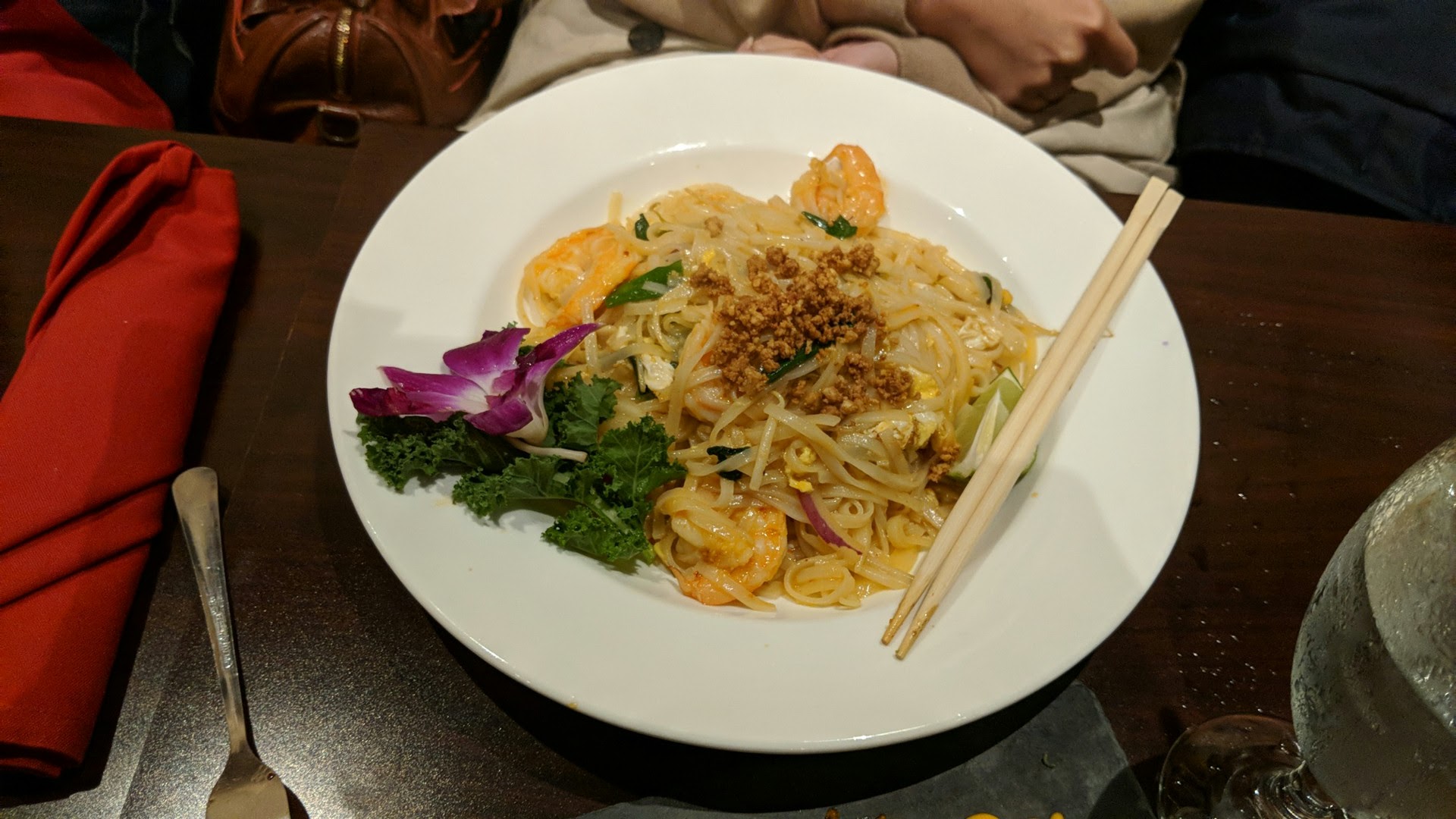 In any event, she quickly brought over an acceptable soup, strangely served as very hot in a chilled bowl. As I was waiting for my main, I glanced around at the decor, seemingly focused upon pink flowers, culminating with a seven-foot lighted tree covered in the same, situated in the middle of the dining room. The TV was off in the actual bar, which was walled off from the dining area with a partial glass wall, so the only sounds were a strange collection of American pop music.