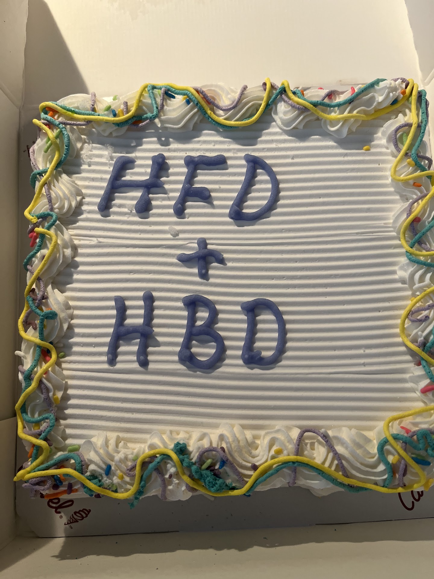 Stopped in to get an ice cream cake, there’s a birthday and Father’s Day being celebrated in my household today. I knew it would be a lot to spell out ‘Happy Father’s Day and happy birthday,’ so I asked the older gentleman that ‘helped’ me, (he appeared to be the manager or the owner and honestly didn’t seem to care very much,) to just abbreviate the two. He asked if I wanted block letters and I said no I would like something pretty and scripty.