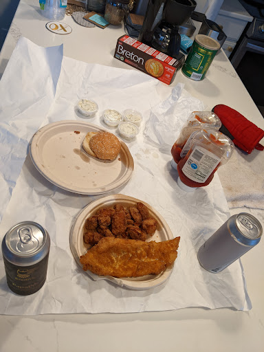 Read moreI came in with high hopes. Everyone out in Greene talks very highly about this place, and I miss them every time they bring their red trailer out to Greene, so I drove 40 minutes to try them here in Cortland and I will say it was interesting. The place is cute, decent amount of seating, you order then sit then go get food when they call for you. I used the touch screen on the wall to order. My partner got just the chicken as he is not a fan of seafood and was only there because of me lol, I got the grilled salmon, fries, and Mac and cheese. Salmon was cooked perfectly, wish it had a tad more flavor, the Mac and cheese was good, but the fries were so boring, I personally didn't care for them. Over all I give a 5/10, i just didn't vibe to much with it. I also am slightly bothered that their trays are only wiped down with a sanitizer wipes before being put in the pile to be used again, no offense but that doesn't seem cleansly enough, even for a restaurant... Staff was very...