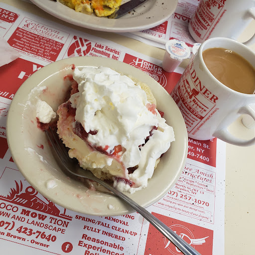 I just had a delightful dining experience at Hydes Diner in Cortland/Homer. It was very busy but we got seated right away. Grace, our server was so friendly and fast. She explained that her grandmother was the owner and cook and her aunts were the manager and waitresses. A family business. I had a senior breakfast of 1 egg 1 pancake and 2 slices on bacon, and I was very happy that had sugar from syrup. Hubby had 2 eggs 2 sausage real home fries and toast. The bill came to $15.66. The food came out very fast, hot and cooked perfectly. We were on the road and just stopped there by chance but we will definitely plan to go back...
