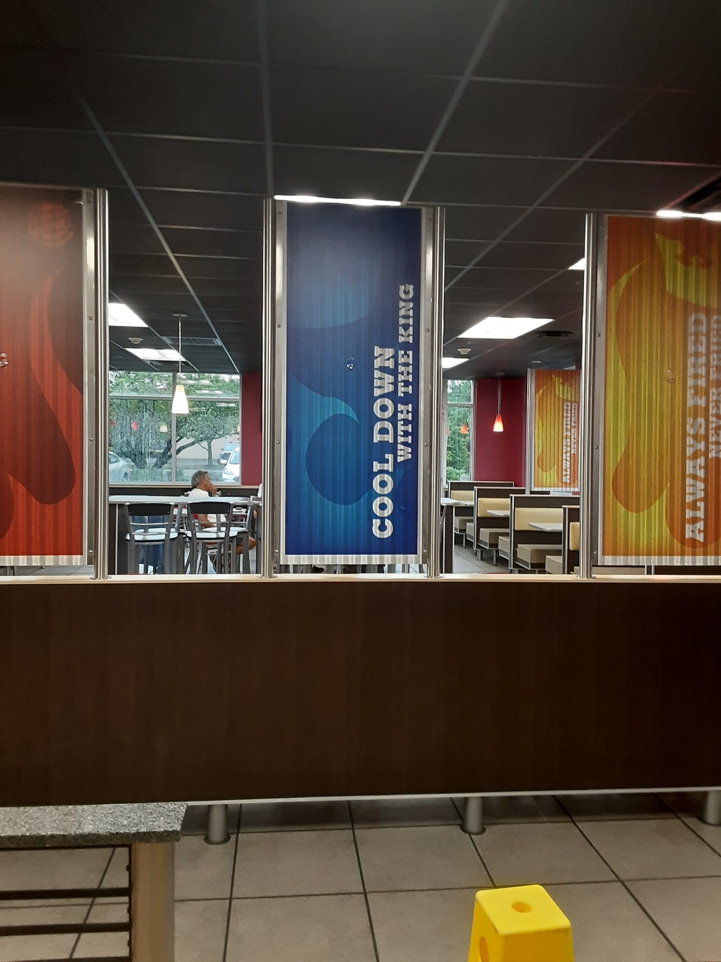 Read moreThis was the first time I had been to this BK. The kid that took our order was pleasant and efficient. We were eating in and got our drinks and waited and waited and waited and waited. Our food was good but a little cold. Apparently no one filled the order. When we finally got our order the manager was screaming at the top of her lungs to the kids there! Those poor kids were all just looking at her and she was just screaming orders, I had come up to get some mayo and she didn’t even care that anyone was there. If my kid worked there and they were being screamed at I would have told them to walk out. That is not a manager. Those kids were scared. All in all I don’t believe I will be...