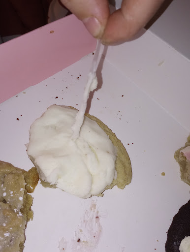 Read moreAlthough I've heard many wonderful things, that was NOT my experience. I have to preface this review with I haven't tasted the cookies yet. I went into the store and put my order in and did not receive a receipt. I waited patiently for my order. At least 10 people, a couple that were there when I arrived and the others arriving while I was waiting, received their order before mine. I went to the counter and inquired about my order. I gave the clerk my name and he went to check. He never came back to update me about my order. After a few more minutes, another worker came and asked me for my last name. After a few more minutes, she brought my order and one of the cookies was wrong. I waited again and she brought my order out and opened the box and the Pink Velvet was not pink. I asked about that, and she said the mixer was not mixing it PINK!!! What??? Ok. She closed the box that had raspberry jelly smeared on the front of the box and on the top and the other side. The napkin holder was empty, so I asked for a napkin to wipe it off. She left and went to find napkins. Because I was waiting for so long, I just left and decided to clean the box when I got home. There was no, sorry, about your order, or sorry it took so long, or sorry, your box is messy.... I will not be...