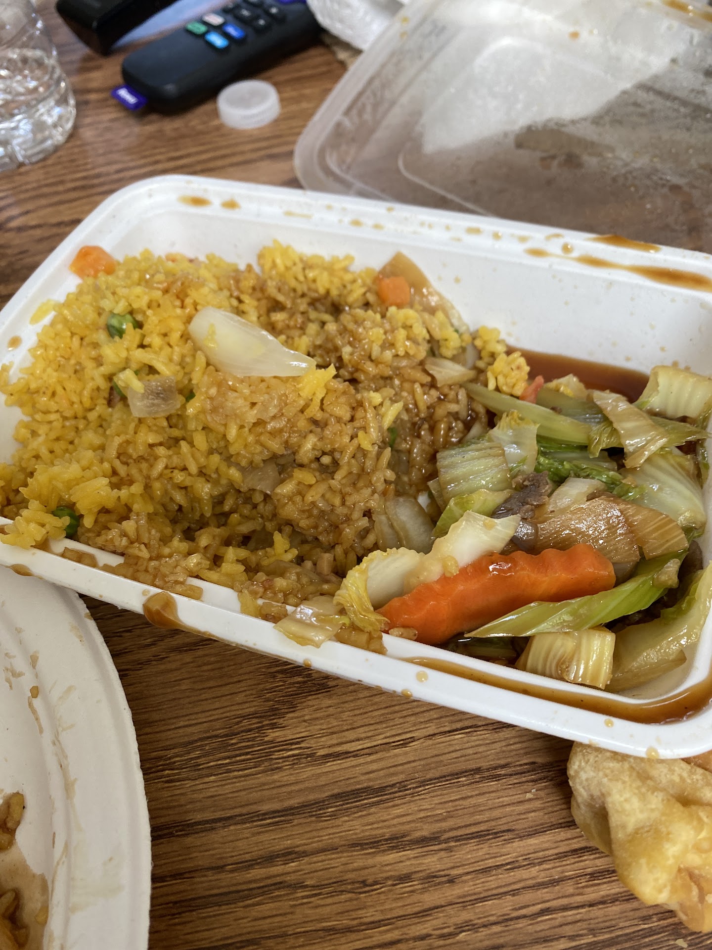 Read moreI ordered a lunch combo platter, and upon returning to the office and opening it, I was shocked to find that it consisted of 90% old, inedible, hard onions and peppers, along with just two bamboo shoots, coagulated brown gel, four shrimp, and perhaps four bites of rice for the shrimp curry. The curry was nearly impossible to see or taste.