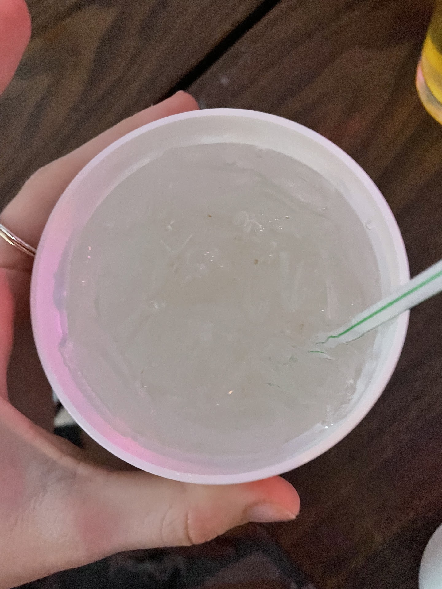 Fun environment and lovely patrons, but if I could give zero stars I would. I could complain about the outrageous prices and poor service, but I feel this is the most important information I can share. 4 people from my party noticed they had stuff floating in their drinks. I saw some too, so I poured my water out and this is what I found. When I notified the waiter, he dumped all of our waters out into a pitcher. It was cloudy and had particles floating in it. He left the dirty cups and said he would be back. No one ever came back to address it or clear the cups. He never even apologized on the business’ behalf. He also never brought us new water, so we sat without water for the rest of our stay. Any well run bussiness would have sent someone out to address this and possibly rectify the situation. Clearly no one here has been trained in customer service. Not only is this disgusting, but it is a...