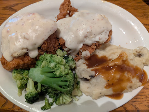 Read moreThe day I went, the entire front parking lot was torn up and impassable .. it was a weekday, and it was probably the best time to replace it, but it was very unusual to enter the store / restaurant from the side emergency exit .. I parked in the back (bus parking) when I realized that they actually were open . Once inside, it was as if the staff was on overdrive trying to make up for any inconvenience their customers may have experienced outside. This is definitely one of the locations where the food is definitely made to specs .. If you have a favorite restaurant chain, you know that sometimes one location can make the food better (or worse) than the others .. Well, the food was hot, tasty, and very quickly served .. a perfect way to start your busy day or get you back on the road if you're traveling through. The biscuits, a Cracker Barrel staple, were slightly dense, and they've been getting smaller over time, but they're still tasty and the perfect complement to their country gravy. •My eggs .. over medium and really perfect .. yolky and not a drop of uncooked white .. actually, it's not easy to get them made properly anymore. •Hash brown casserole .. cheesy, hot, crispy edge bits, .. exactly the way it should be. •Fried chicken breast .. hot, really crispy, crunchy crust, super tasty, and moist meat .. very satisfying. •And again, the country gravy was exactly what I needed to satisfy my cravings that morning. The store was loaded with goodies, and the staff was exceptionally attentive both in the restaurant and store. This location may have had parking issues the day I was there, but I'll definitely will stop in whenever I need a really good...