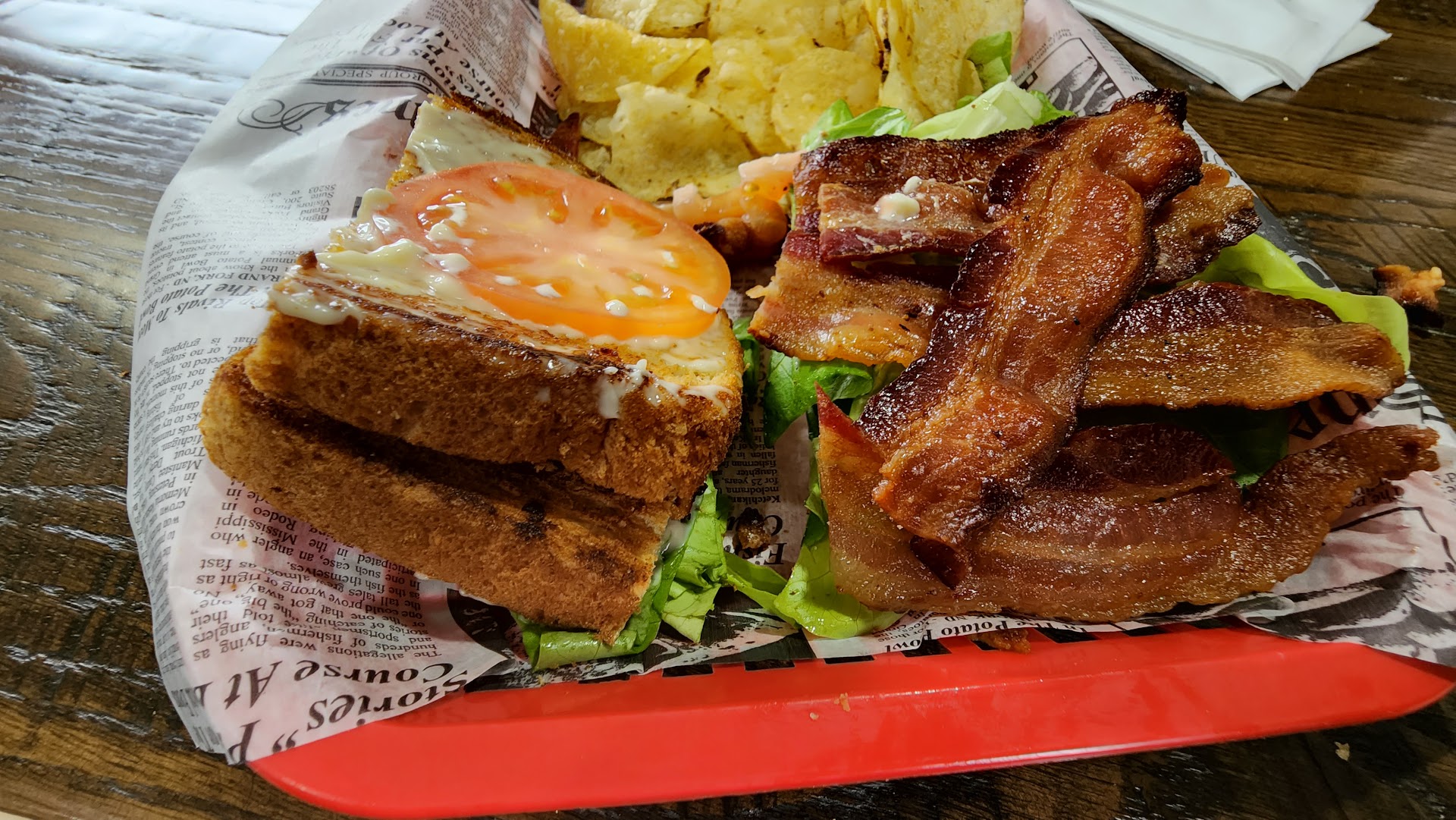 As far as the food goes, my mother says they have great chicken salad which is why we went. I don’t like chicken salad, so I can only attest for the “special” posted, a chicken bacon ranch on an herbed wrap (no tomato, for me). What I received was chicken fingers, drenched in ranch dressing, and approximately three shreds of lettuce. On an herbed wrap! I love ranch dressing but for there to be almost no lettuce, that’s been wilted from the heat of the chicken finger, it was revolting. In total we purchased Wrap special/ came with ~7 ruffles potato chips. 1/5 stars Blt/ mom said this was good but she also doesn’t s a saint and liked the counter girl (I liked her too she was just doin her job) 1/2 pound speedie 1 med. dog bone 1/2 lb chicken salad