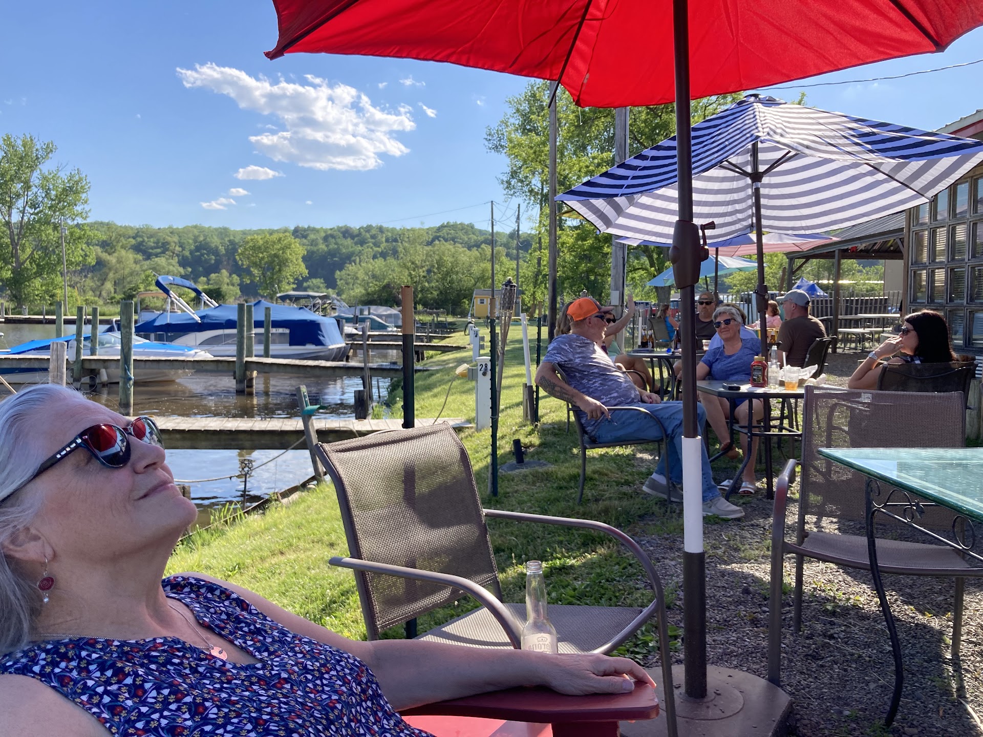 Read moreThis is a definite locals place. The girl came out from the bar said you're new. I'm not busy so I'll get your drinks but if you want food or more drinks you have to come to the bar. Cook brought the food out, decent burgers and fries. You do all the running but she expects a tip. It's next to a small marina alot of signs and lawn ornaments. Parking lot looks like some kinda company its basically a garage. Call me weird but I think if you're serving food someone should come...
