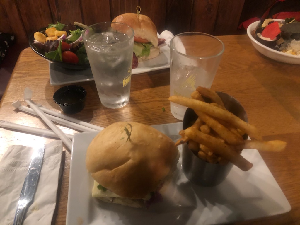 Our waitress— who seemed brand new to serving as she was VERY nervous and acted scared of her tables, she never once came over to check in with us or get us refills. We saw her walk back and forth a bunch of times past us. She brought out our food and we were already heated. We had to ask for the basics (napkins and silverware). She said she couldn’t find any more silverware (what!?!?) and we saw her walk to and from the kitchen, the bar, etc nonchalant. At this point we flagged down another server and asked about getting silverware, napkins and who was in charge. She ended up taking care of us, thankfully and taking money off the bill. In the meantime we are, but my friend never received her burger until we were done with ours, as our original waitress brought it out and literally just said “sorry”, and at that point she realized the other server took care of us. We ended up leaving and not even eating it S it came out with pink in the middle and she asked for it well done.