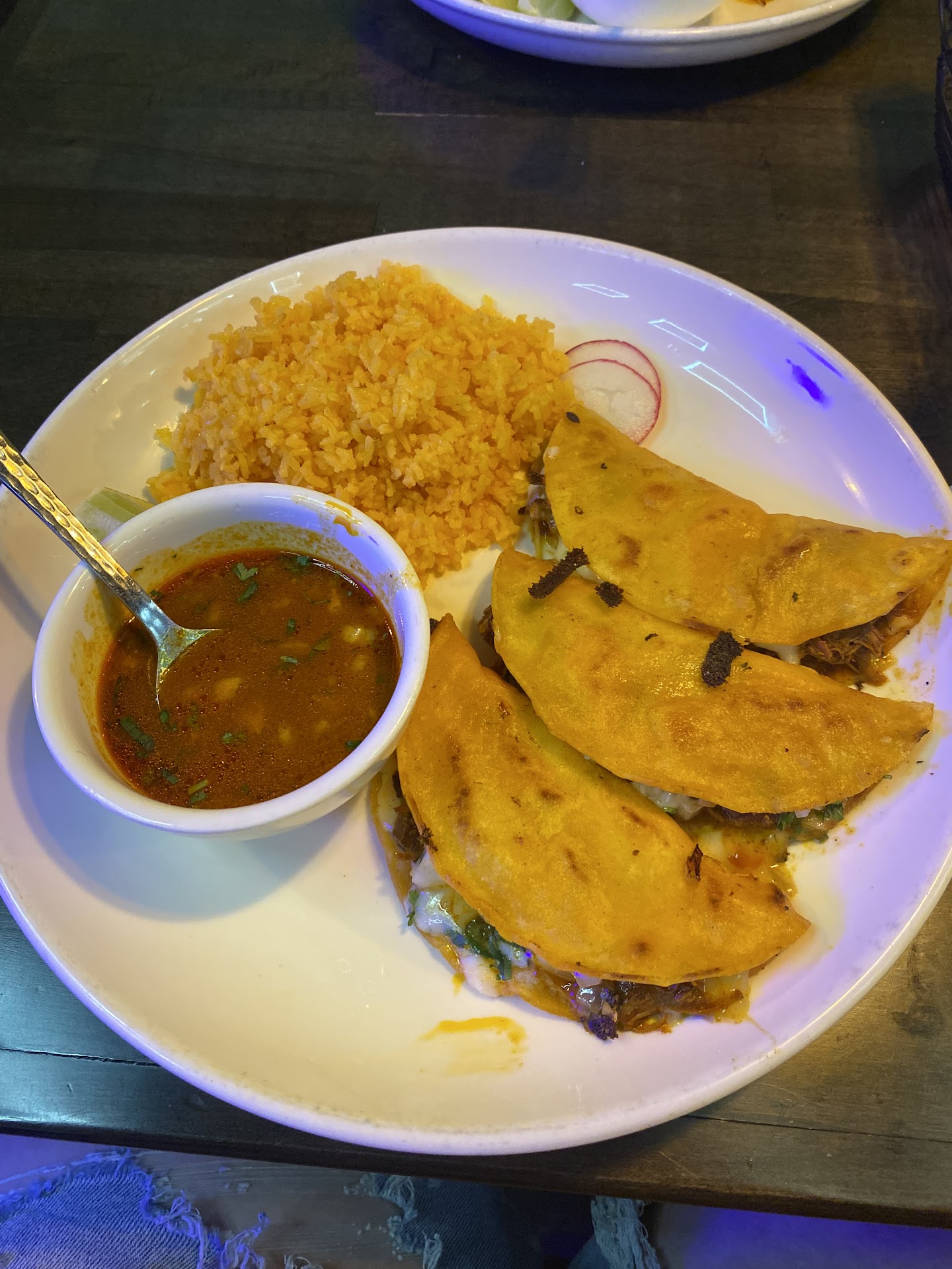 Read moreI went to dinner at El Guac on a Saturday night around 6:30-7 oâclock with one other person and it was absolutely dead, there were maybe 2 other tables with people. When we first arrived, I was underwhelmed by the size of the salsa containers for our chips but it turned out to be more than enough for two. We also ordered the queso with chorizo and that was very good as well, a bit slacking with the chorizo but otherwise a very decent queso. I ordered the birria tacos for my meal and this is why Iâm giving this place 5 stars. The consume was so delicious and hearty. The tacos themselves had a nice crunchy shell, a BEAUTIFUL cheese pull, and the meat was so tender. I find that most places overcook their meat but El Guac cooked it to perfection. They were also served with rice which normally doesnât come with birria but now I never want to skip out on it again. overall they were definitely the best birria tacos iâve ever had. $17 is a touch expensive but for the tacos, consume, and rice it is definitely worth it. The staff was very friendly and our server was an absolute sweetheart. The place was clean, staff was so nice, and the food was delicious. This place definitely shouldâve had more business on a saturday night so if you want to support a local business and have a delicious meal, El Guac is a great place. I definitely will be...