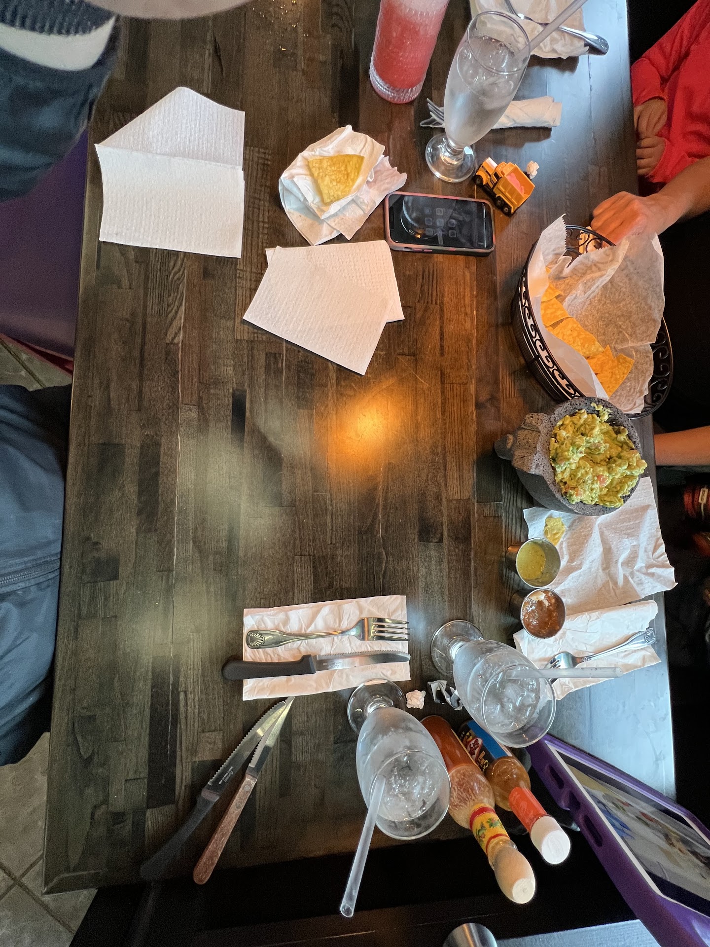 We ordered guacamole and chips, a burrito bowl with cheese and sour cream on the side as well as the protein on the side. Not to be difficult, but because my wife is vegetarian and our 3 year old is anaphylactic allergic to dairy.