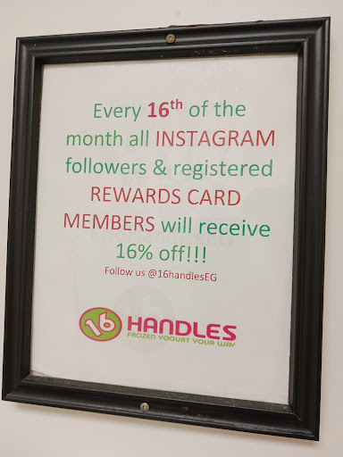 Every other Sunday after riding lessons for my Granddaughter Hannah, we come to the East Greenbush 16 Handles because it is the most delicious frozen yogurt anywhere, and believe me, we have tried them all, but nothing is better than 16 Handles!! The flavors are all delicious but we love Salted Caramel the best!! The toppings look amazing and there are so many to choose from but we prefer the frozen yogurt without anything on it, just pure deliciousness!!! The place is always clean and tidy and the staff is always kind, friendly, cheerful, courteous and knowledgeable! I have many allergies and they help me with that too!!! Sometimes there is a kids party going on which is nice seeing kids having a great time! We love it there and by the way, Hannah is constantly asking to go, she would want it everyday, so we do go on other days aside from Sunday! True story! Hannah broke a nail and was upset and told me the only thing that would make her feel better was to go to 16 Handles!!! Lol best place...