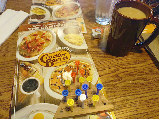 Been a while since we've been to Cracker Barrel, likely before the pandemic. The place itself hasn't changed much, the "country store" feel was still there, with much of the same merchandise for sale: old-timey candies and chips, small kid toys, some clothing and home decor, etc. Similarly, the restaurant was the same, as I'm sure all in this chain are. Comfortable, a touch rustic, again with a "country" feel.