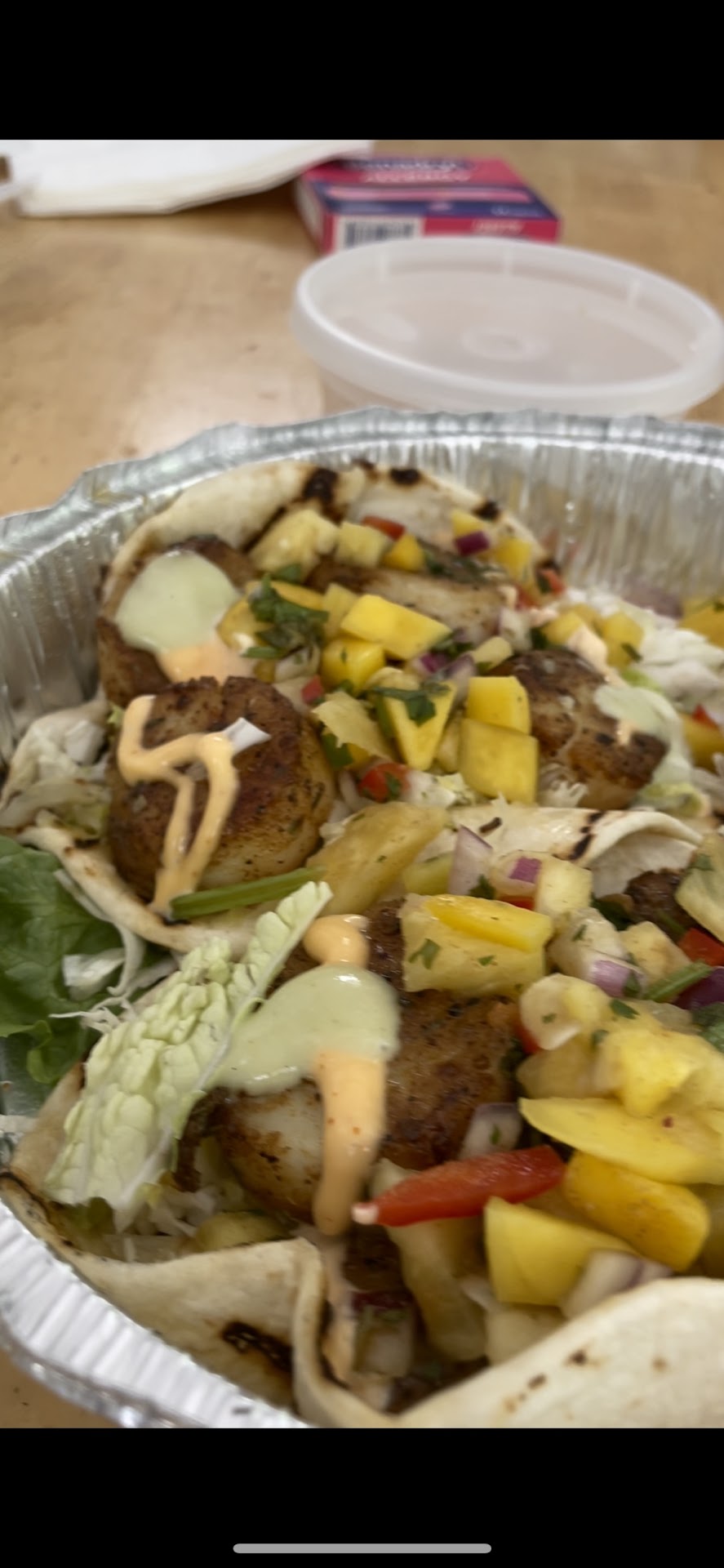 Cod taco - you get multiple choices of fish. Ask him and he breaks down all the fish and which ones you may prefer. Really juicy and amazing. The sauce is the highlight! Really good tangy rich sauce. Similar to the lobster roll, the soft taco shells are generic but gets the job done.
