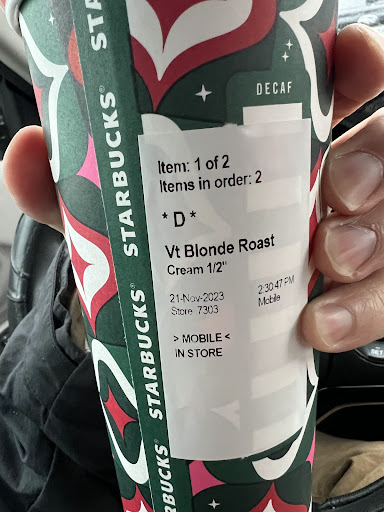 Read moreI was in this Starbucks Oct. 14th 2025 at 9:28 am. Took almost 20 minutes for an oatmeal. So here's the problem: the one employee who was checking everyone out, was doing the lions share of the work, you had 4 other ladies just doing the least possible. The one pink haired young woman couldn't have done any less. Too busy talking to the other barista about "not gonna a wear a bra anymore". Wow.. While I was waiting for my oatmeal (which, by the way, I had to ask for the brown sugar, fruit and nuts again, was just thrown onto the counter) a young lady next to me was saying how bad this Starbucks has gotten and that she had a similar experience a few days ago. Starbucks, you need to rethink your hiring process, or pull the plug. It's also quite funny how Starbucks replies to these negative reviews with the exact same reply. Even if you do report to the link they give you, nothing is done. It's all...
