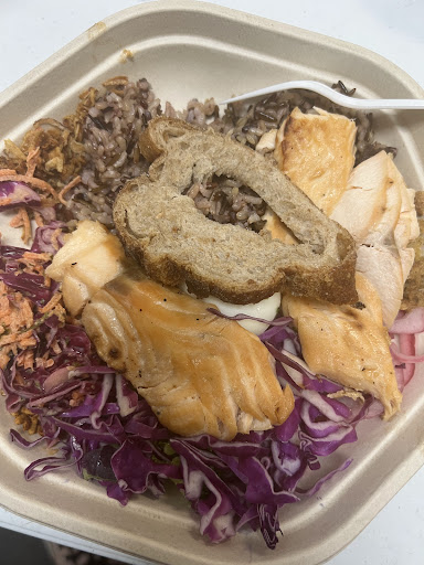 I recently ordered the salmon bowl from Sweetgreen, which included wild rice, onions, egg, vegetable slaw, crispy onions, and bread crumbs. The bowl was good overall, with a decent mix of flavors and textures. However, compared to my experiences at other Sweetgreen locations, this particular bowl did not quite measure up. The wild rice and onions were well-cooked, and the vegetable slaw added a nice crunch. The egg was a pleasant addition, and the crispy onions and bread crumbs provided a satisfying texture. However, the overall flavor profile seemed to lack the vibrancy and freshness I’ve come to expect from Sweetgreen. While the meal was enjoyable, it did not leave the same lasting impression as my visits to other locations. I hope that my next experience at this particular Sweetgreen will be more in line with the high standards I have experienced elsewhere.
