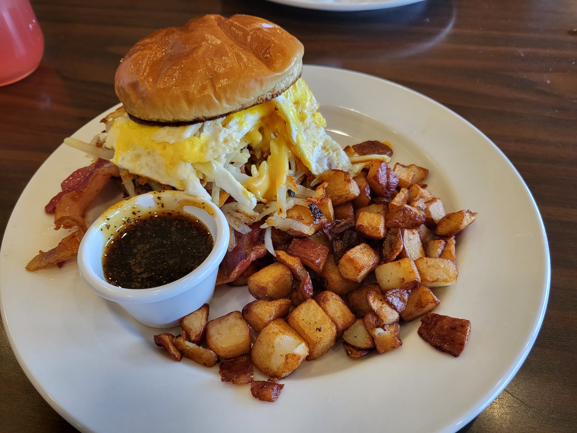 The food was very good, delicious even & deserves more stars. I don't like to complain or say unpleasant things about servers because I am well aware they have a tough job! The girl we had as our waitress seemed very uninterested in serving tables and even less concerned if customers were ok or needed anything. She was quite happy and willing to talk to the other waitress working and she kept forgetting our order. We asked her 4 times for a Side order of sausage links. She kept forgetting about it even after we asked about it numerous times and easily it took 40min to get them. Also, when we initially placed our food order, I ordered a sandwich to go. She also forgot to put this order in at least twice (since she would talk to her co-worker immediately after leaving our table). After finishing our meal & had paid for it, we continued to wait about 20 more min. for the to-go sandwich. Again we had to remind her at least 2x to place my to-go order as we sat waiting, our meal long over. Now I know the servers are busy w/customers and other duties, but the entire restaurant had only 10 tables seated throughout and there were at least 3 waitresses working. So, our server was not too busy. She certainly had plenty of time to talk w/her co-worker friend every time she'd walk away from our table which caused her to repeatedly forget our orders. Overall, I was quite disappointed. The to-go sandwich took so long (esp.since I had initially ordered it when we arrived), that I was at register ready to cancel my order so we could finally go home ..& that's when the order finally arrived. All in All, the 3 of us arrived at 6pm & we each ordered a sandwich meal but after waiting so long for a side order of sausage links and then my to go order, we did not leave until 8: 15pm maybe 8:20pm. The meal realistically should have only taken 45min in its entirety not...