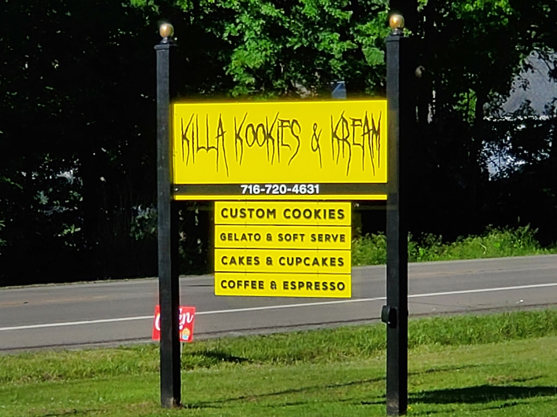 Ordered a 60th Birthday cake for my husband many days before we were to pick it up during our short vacation in Celoron. Killa Kookies & Cream was recommended by the hotel. I was highly disappointed in what we received. First the cake was to be done at 1:00 pm but they called shortly before while we were already out to pick up the cake to state they we’re running behind. That is forgivable. Next, I asked for “Happy 60th Birthday Chris” to be put on the cake and it was missing. The man’s response was “I don’t know how we are going to do that now.“ Also, I had asked for cream cheese frosting and could not taste any cream cheese in the frosting. Last was the sticker shock, I never expected to pay $48 for a six inch cake. This is partly my fault because I did not ask the price at ordering but I feel the cost probably should have been revealed ahead of time. I am not from around here but needed to let other travelers know of my experience. Avoid if you want to overpay for something different than...