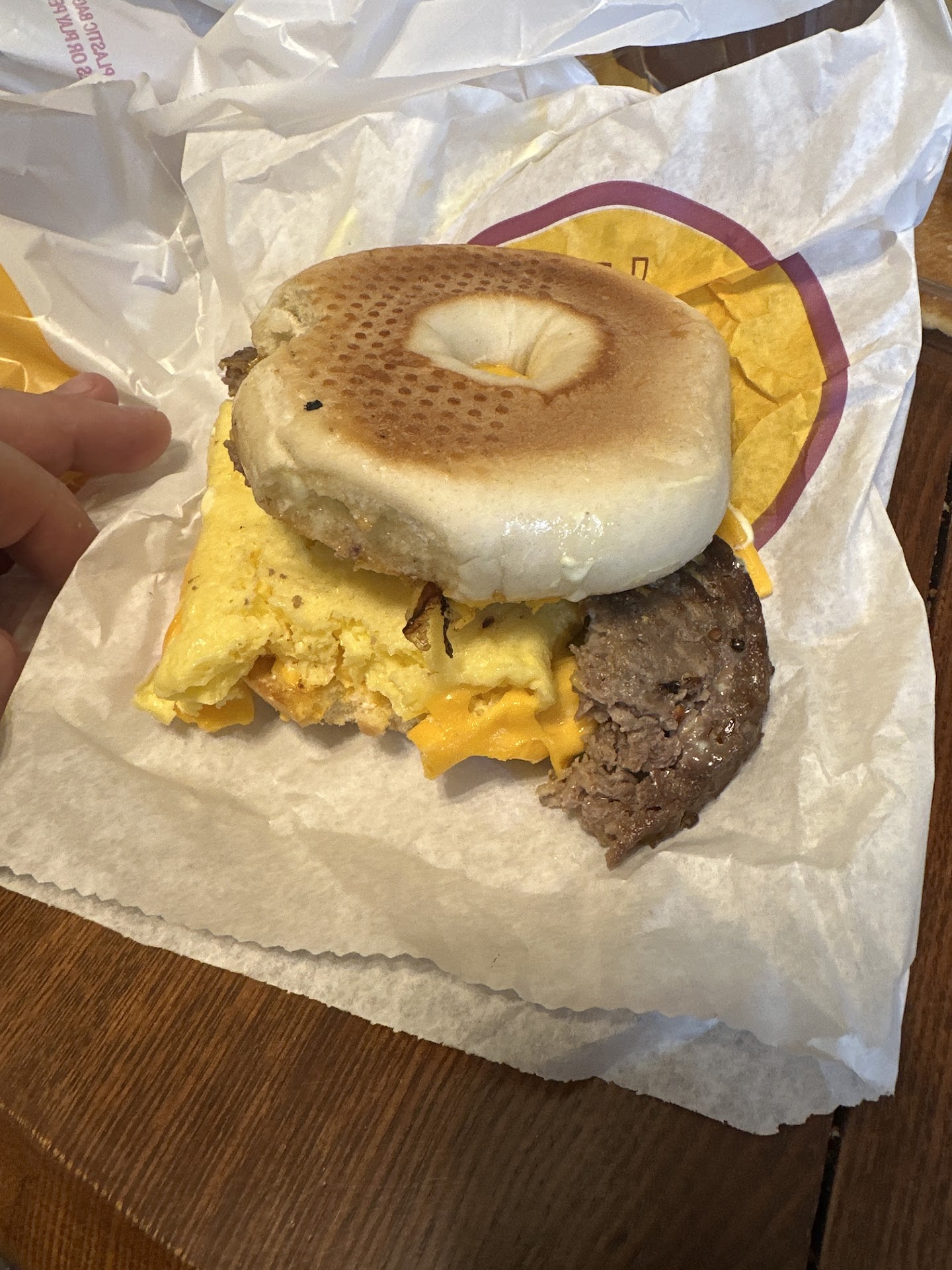 So I ended up getting a vanilla drink with the cup/lid drenched in caramel sauce. And instead of Sausage McMuffins, they gave me a couple of Egg...