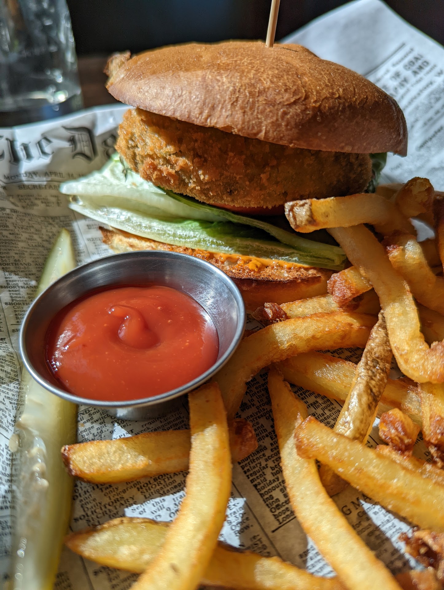 The fries were very tasty, and somehow, a little charred, which was a nice touch. The pickle was fresh, and I think was brined with rosemary, but I can't be sure. The sandwich was on a freshly grilled bun, and the ingredients were flavorful, but the avocado patty only covered about 2/3 of the bun, and it wasn't that large of a bun.
