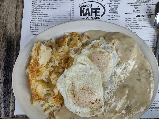 We are Up North for the week at our Cottage which is about 20 miles from Fifield off of Hwy. 70. We were just driving around and came across the Kountry Kafe by chance. We were happy to see that they were open, since it was Labor Day. I was pleasantly surprised to see how nice and clean this place is. We were greeted promptly by a very pleasant waitress. After a few minutes we ordered (lunch) and promptly received our food. The food arrived after a short wait and it looked great. I got the Patty Melt and my husband got a Cheeseburger and Fries. This was the BEST Patty Melt I have ever had. No complaints from my husband either! We will definitely be back !