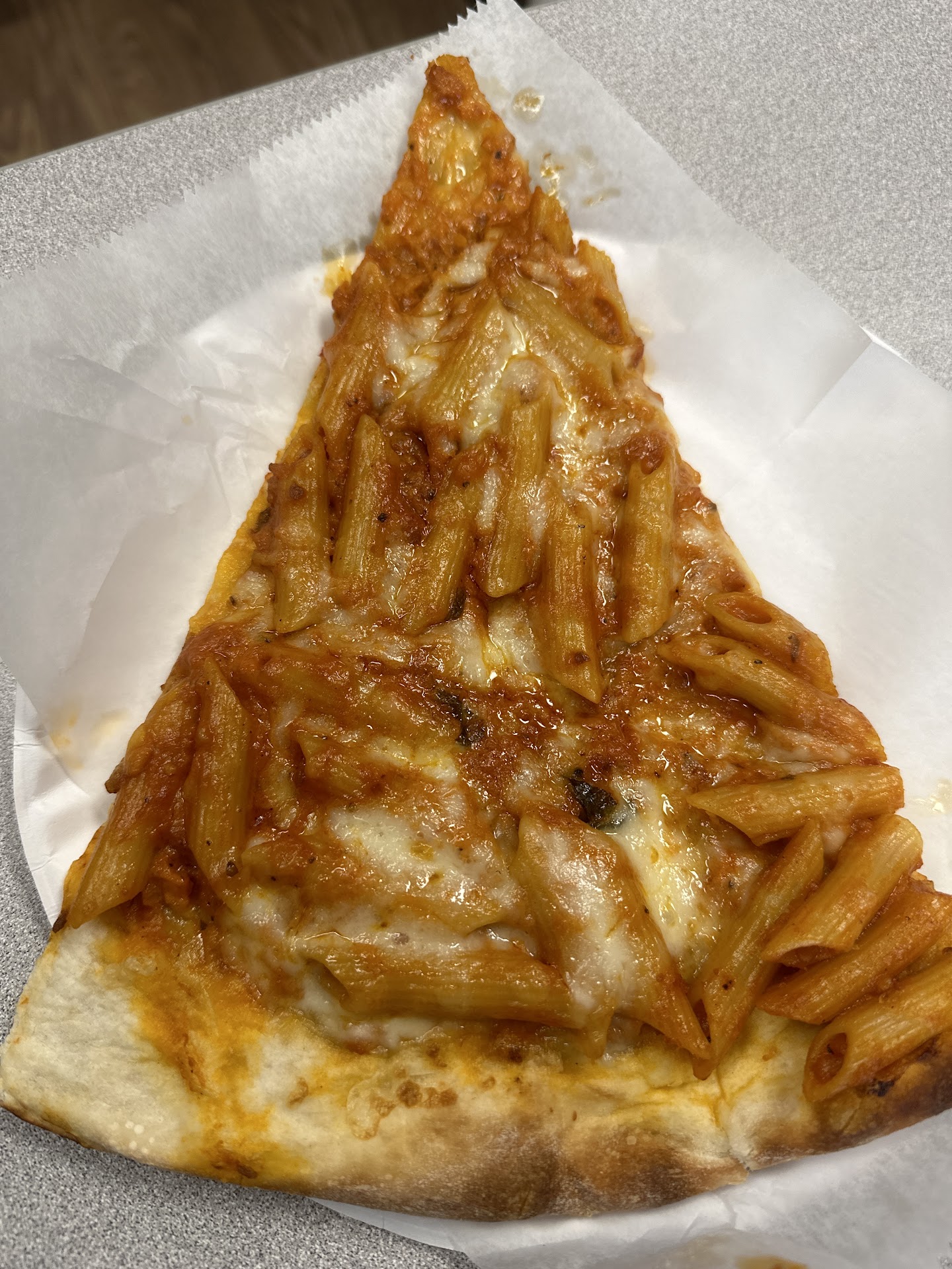 They tasted fine. Unfortunately, both slices were lukewarm when I got back to the house, which was only 7 minutes away. Temperature notwithstanding, the taste was decent. It wasn't bad pizza, it was just the most expensive pizza I've bought in memory, which maybe would have been forgivable had the taste surpassed mediocrity.
