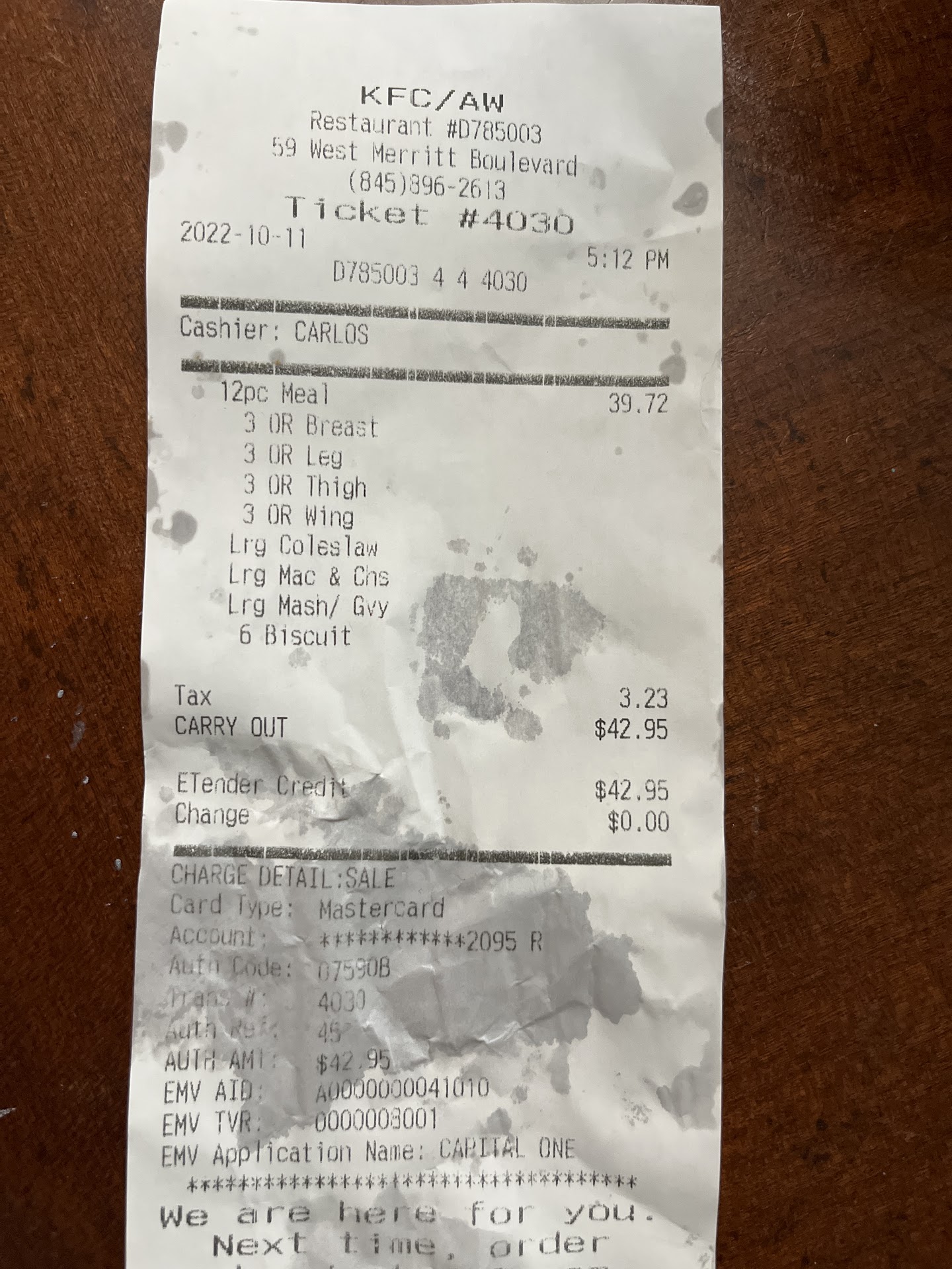 Read moreI’m a regular customer at this location for the past 14 years. I’m deaf and physically challenged, so communication can be problematic when ordering food on the go. KFC ( this particular one located in Fishkill ) has always tried to make communication a breeze. The girls usually write on a piece of paper to ask me questions, such as: “ Do you need anything else ?” and “ The price is $7.35.”