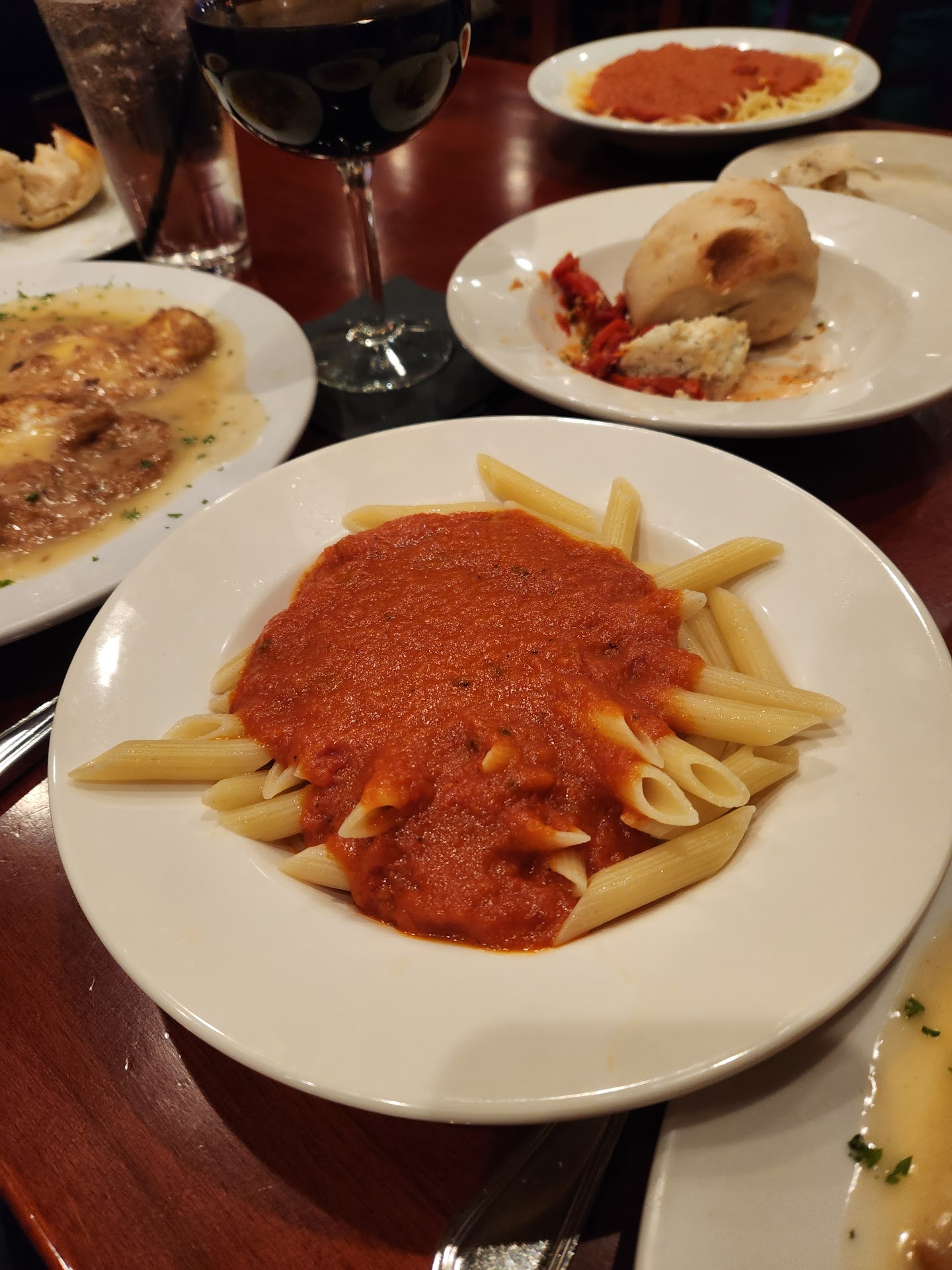 I will compliment this place in two regards: 1) The bread for the table was baked very well (although they could have let the butter defrost from it's frozen state a bit more to try to fool us into thinking it was fresh butter), and 2) the waitstaff were attentive and considerate. These two positives are the only reason why this establishment that's pretending to be an Italian restaurant gets two stars...