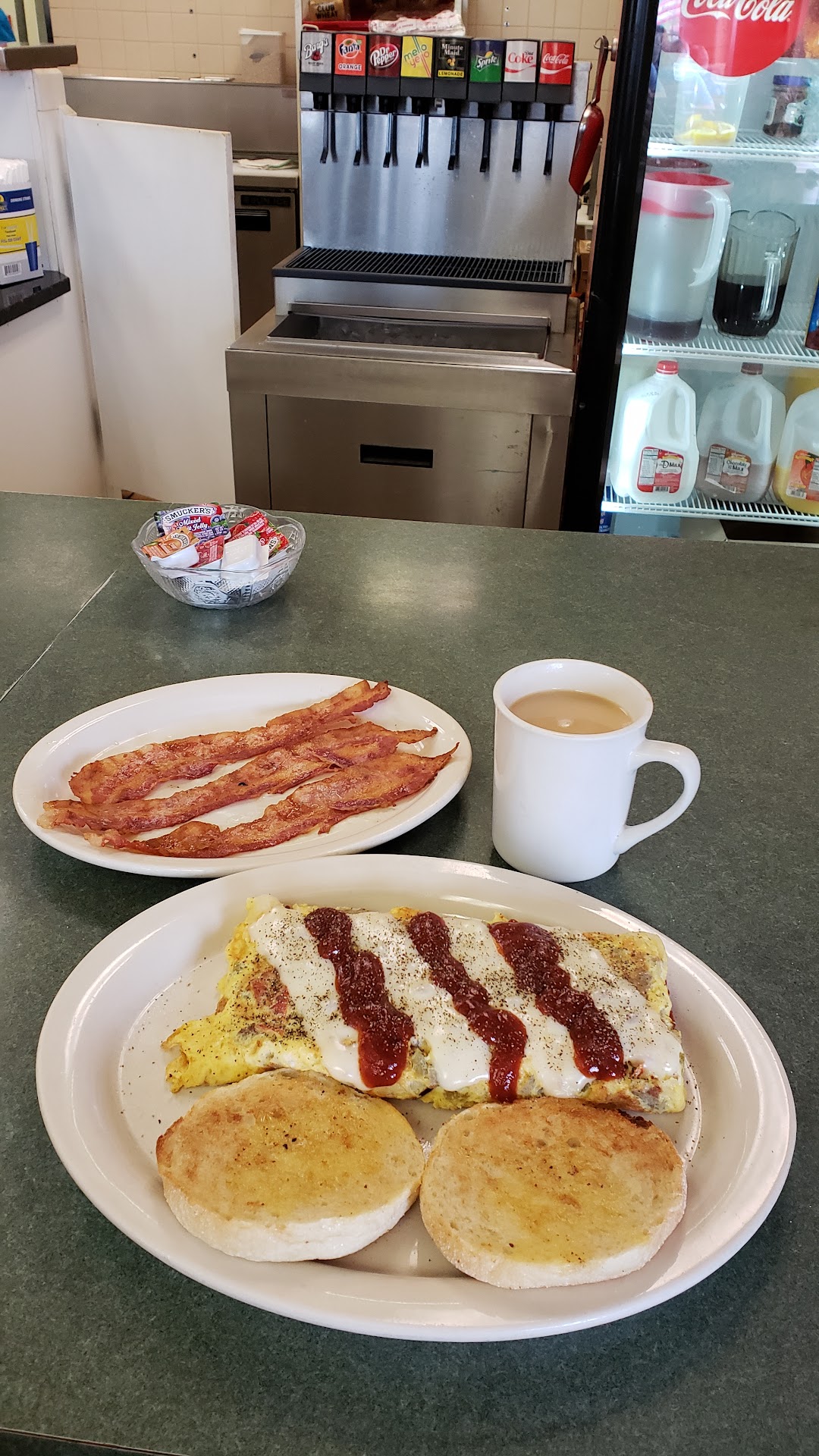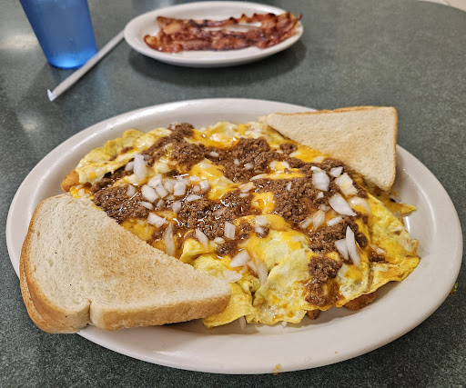 Read moreThis was our first time eating at this place! We had never heard of this restaurant until I looked up" best breakfast places to eat that's near the airport" and this restaurant came up. At first when we were driving to it, it seemed a little sketchy the location but when we pulled up and saw it was a small hole in the wall and busy we couldn't wait to sit down! There are definitely regulars that go there because the waitress knew them by name which is really nice and also knew to just sit where ever. There isn't many tables probably about 4 sitting tables and about 5 booths. There is sitting at the counter and you can see into the kitchen and watch the cooks make your food! Its very clean and organized. My kids ordered pancakes and they were the size of the plates! Fluffy and delicious! My brother ordered this "garage plate" breakfast which he said was very good! I had sausage biscuits and gravy which is my fave and always have to order it at any new breakfast restaurant. Very delicious! Biscuits are good and gravy with a good amount of sausage in it! The eggs were scrambled soft which was perfect! Very delicious breakfast! It's far for us to drive but if we're ever waiting on a flight and have time we will eat...