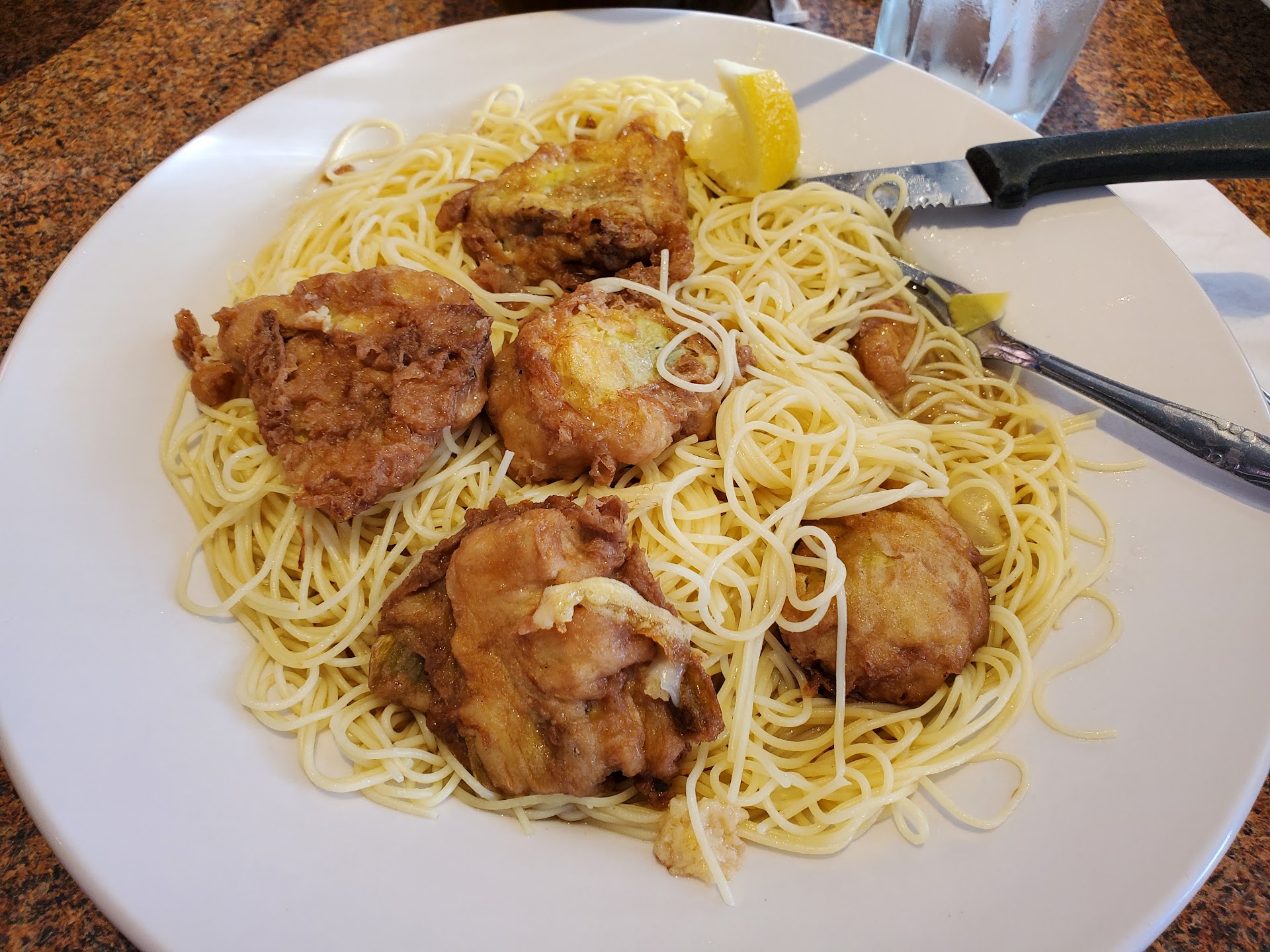 We ordered a vegetarian dish of pasta with broccoli, oil and garlic and were given pasta with chicken broth with pasta instead. This restaurant is not friendly to vegetarians or vegans, or people with dietary differences.