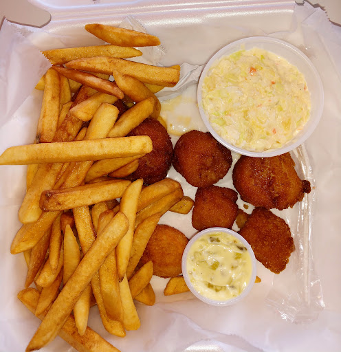 This is mainly for takeout, but they do have a counter table against the front windows and along a short stretch of wall with stools to accommodate about eight people who wish to eat on site. I ordered a fried scallop dinner with french fries and coleslaw. I received 7 perfectly cooked medium-large scallops that were hot, moist inside, and nicely flavored with a seasoned breadcrumb coating and tartar sauce for dipping. The coleslaw was a perfect accompaniment. Not being familiar with the menu, I was a bit slow in ordering, but the staff were exceptionally patient and friendly. I look forward to returning to try other menu items. UPDATE-1: Returned to try the fried shrimp dinner. As for the fried scallops I had on an earlier visit, the shrimp were hot, perfectly cooked, and surrounded by a crisp, well seasoned, breadcrumb coating. The cocktail sauce had a generous amount of horseradish, just the way I like it. And, the coleslaw, with bits of pineapple, worked perfectly as an antidote to the heat from bites of shrimp and sauce. An excellent meal! UPDATE-2: Returned to try the fried clams dinner. Excellent meal for a very reasonable price. UPDATE-3: Never a disappointing meal. This place is consistently good. UPDATE-4: Still serving excellent food at a very...