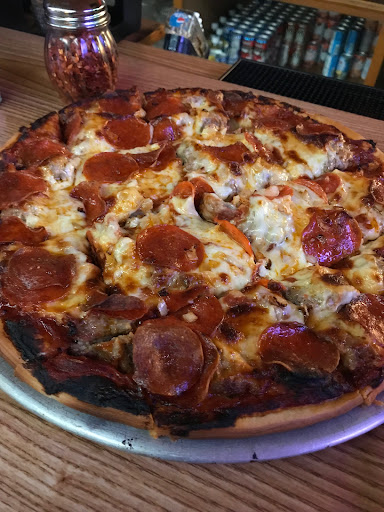 Well, the whole place looks like it's ran off of donations. The men's bathroom door doesn't close all the way and the water was barely dribbling out of the sink. The urinals were filled with urine and when flushed only a small trinkle of water came down. The bartender did not want to be there. I waited for nearly 10 minutes while she sluggishly shuffled around and was clearly avoiding having to walk to my place at the end of the bar. Her service was enough to deter anyone from coming there again. When the pizza finally came out, it was good. But the plates were dirty and the menus smelled like they've been wiping it down with moldy unclean water. The smell stuck on your hands after holding them. The place has clearly seen better days, most of the game machines didn't work, the quarter machine was not working and no fans were on for air circulation. It was 84 and muggy outside so it was definitely needed. The overall service was a 2/10. Our server was dirty and uncaring with very little class or professionalisim, and her not having any teeth led to things being unintentionally spat on. The waitress grabbed my cup from the top with her fingers where I would put my lips to drink. She also just kind of tossed the plates on the table instead of putting them down nicely. It sounds like I'm being a complainer right now but I haven't had this bad of service in such a long time. They better be happy they have good pizza, because people definitely do not go there for the atmosphere or...