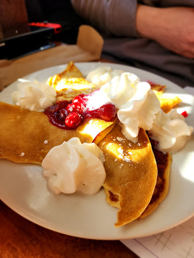 Read moreJulie's Park Cafe is a cozy little restaurant serving breakfast and lunch in the town of Fish Creek. First off, I have to say, we really enjoyed the service and the folks who run the place. They were attentive and very nice! We also loved the kitchy "planter" coffee mugs! What a fun touch to the cafe. The food came out fairly quickly after we ordered, and it was tasty. I would recommend the crepes with cherries, as they were quite delicious and satisfying. The chicken and waffle with pecan syrup was also a great brunch item on the menu. It was off-season for Door County, and the place was still hopping for a Sunday morning, so that speaks volumes of where the locals like to eat. I would say that it felt a little close in the interior of the Cafe, but that is not necessarily a bad thing. Overall, this was a good breakfast spot in Door County, open year round, serving good food with...