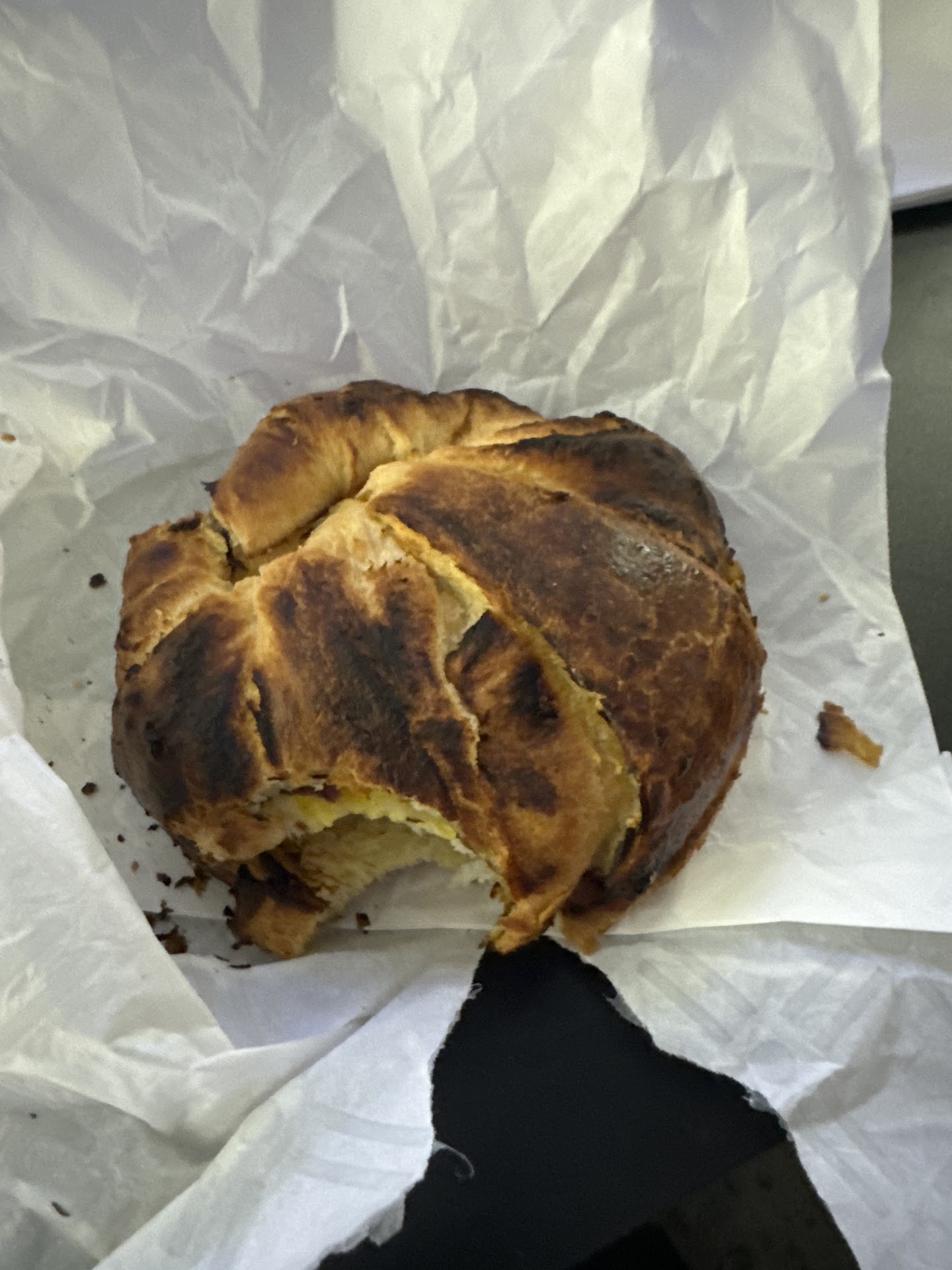 I mulled over the drastically different choices presented to me from what I sought, and ended up running with a blueberry muffin, a coffee cake muffin, a coffee roll, and one of their prepackaged shortbread cookies. Coming to a total of just over $10, a pretty alright deal.