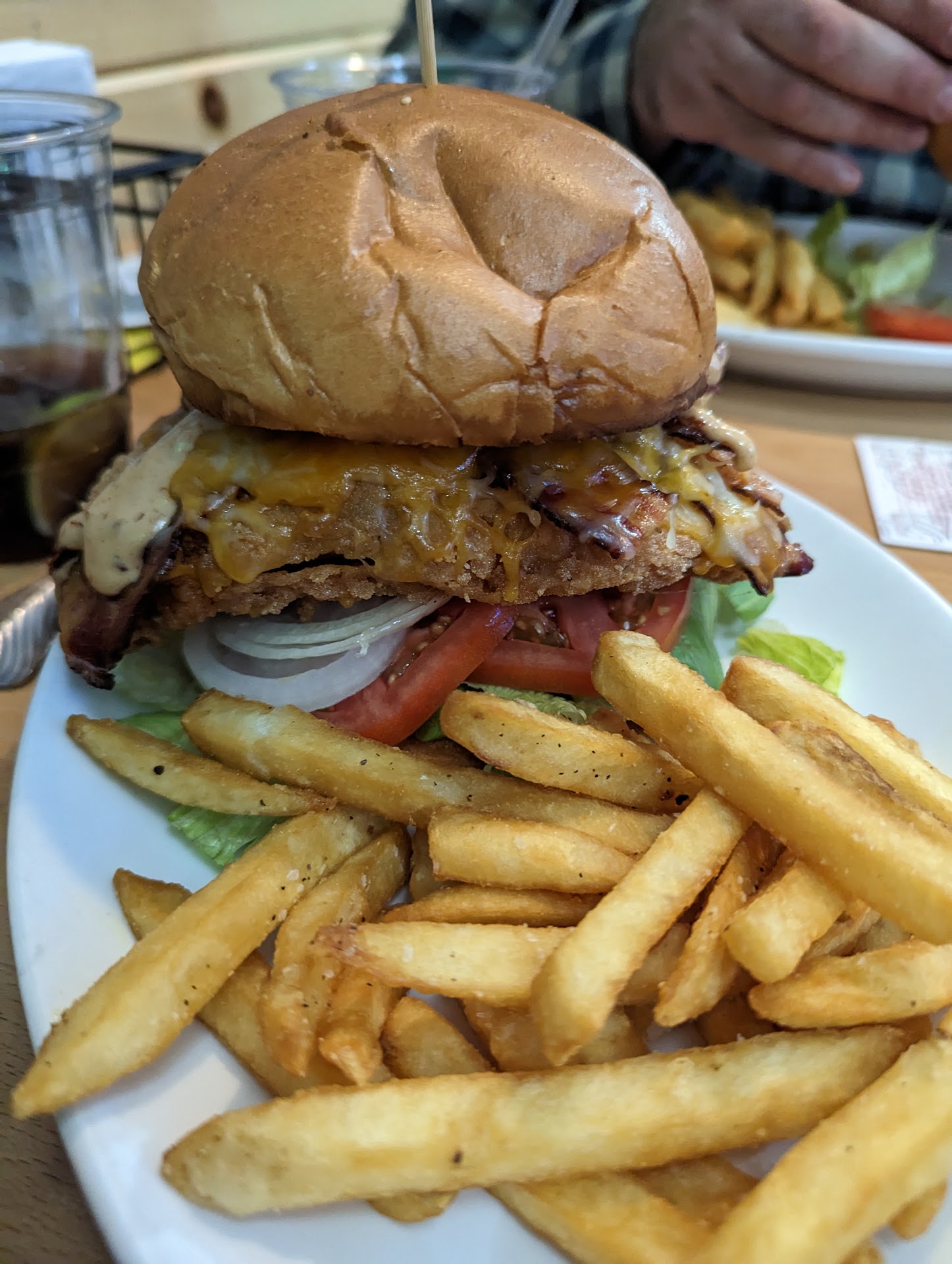 Walking back to the car the bag felt pretty hefty but I decided to check my order, and I found the wrap, which comes with fries (I also added a side of onion rings) was missing the fries. Now I could have gone back in, but the weight of everything told me this would be enough, still, I was shorted my french fries, so no frings for me.
