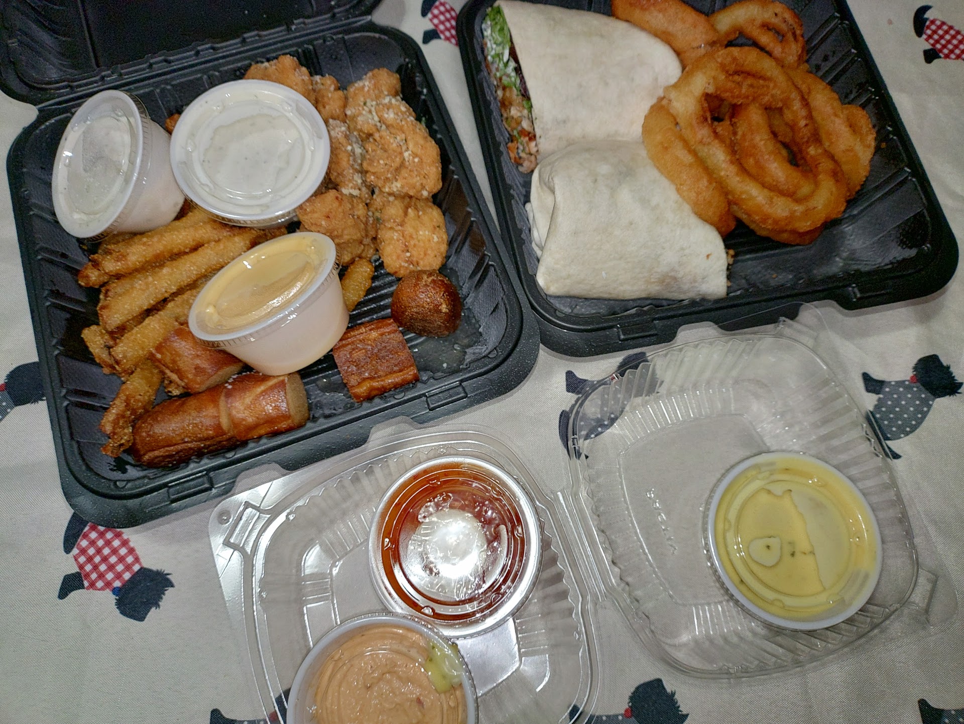 Thought this location looked interesting so I made it my dinner for a Friday night, ordering online through the dedicated website. I ended up going with the Pick 3 (Fried Pickles, Boneless Wings, & Pretzel Bites) and the Chicken Bacon Club Wrap. Coming to a little under $38 before tip.