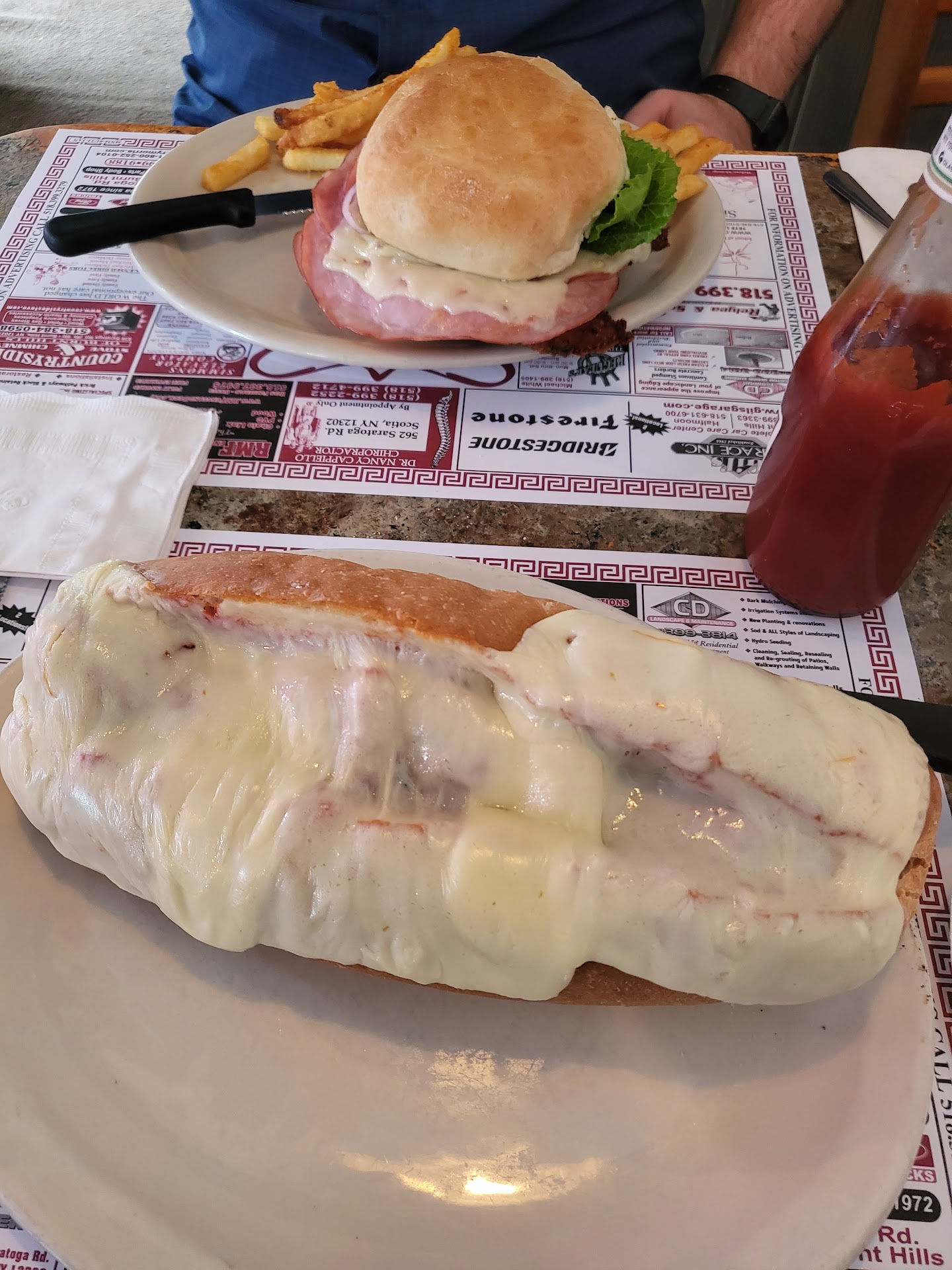 The omelets were LOADED, and I mean LOADED with ham, peppers, cheese and onions. The fries were crunchy on the outside and creamy-soft on the inside. Hubby said the toast was neither dry nor soggy, so that's a total win for takeout toast!