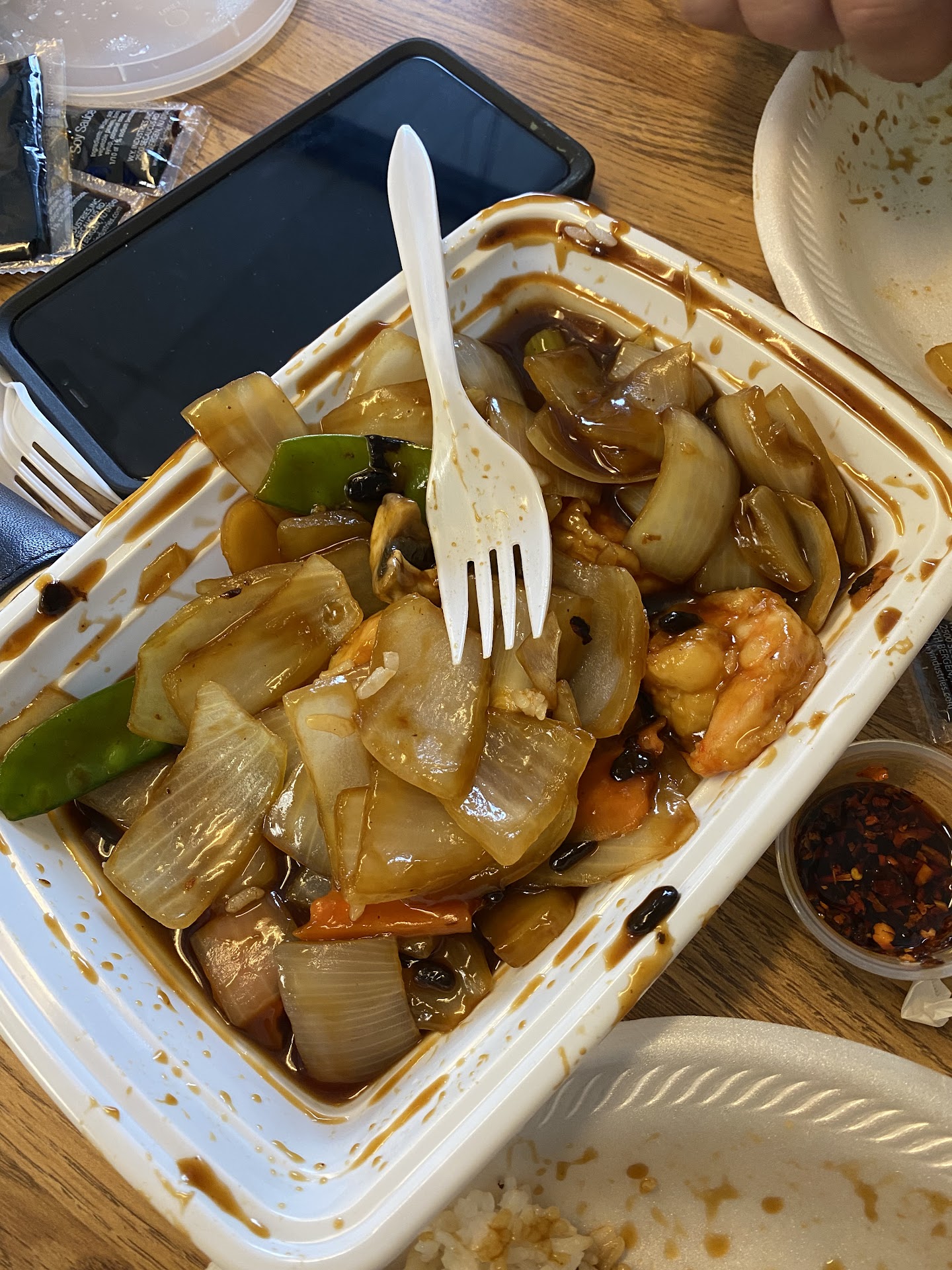 When I first looked at the noodles dish, it was definitely not the one that I would have ordered from anywhere else. I took a bite. It was tasteless. There was not enough seasoning at all.