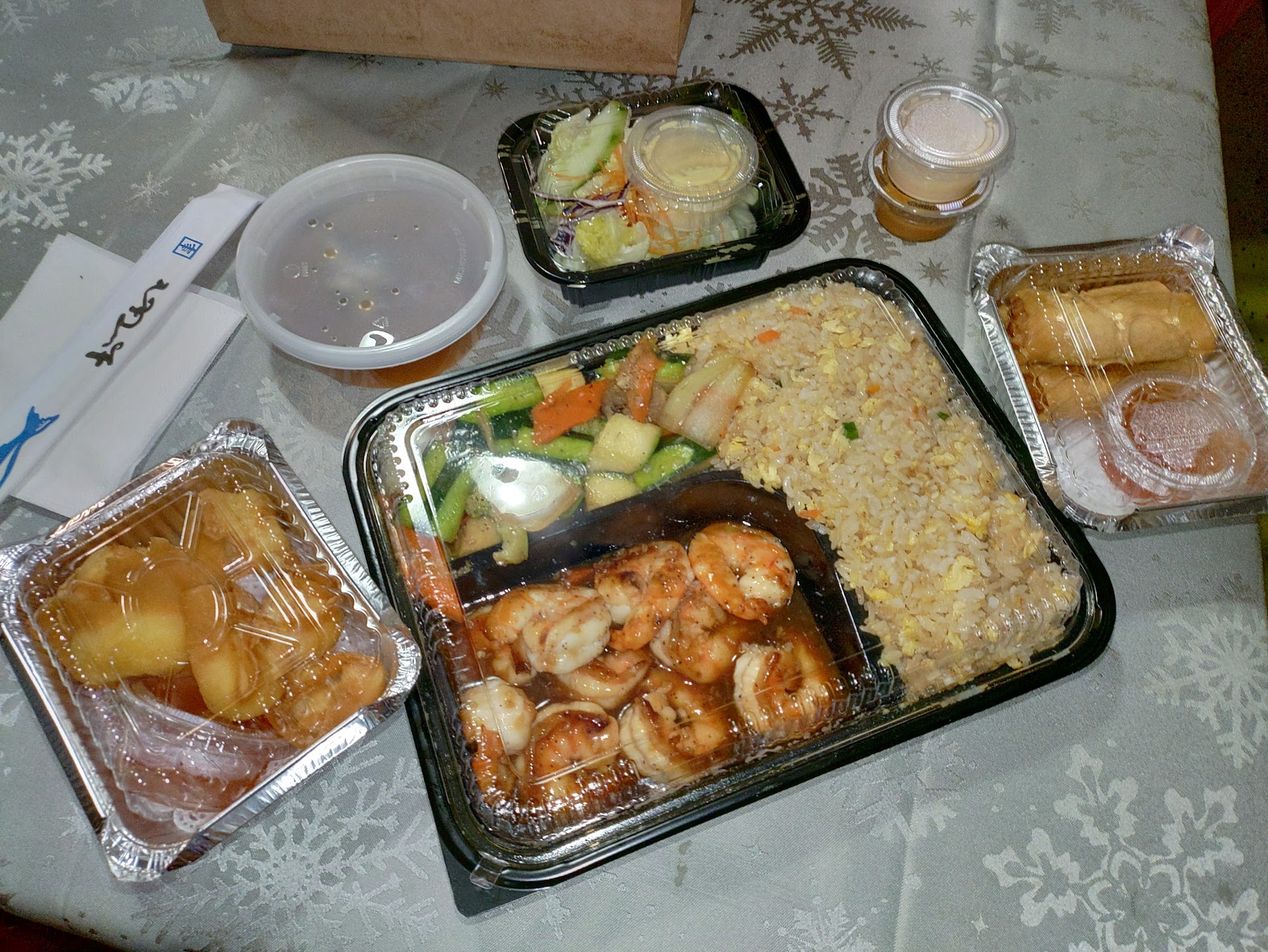 Ordered online going with the shrimp hibachi meal, an order of the crab rangoon, and spring rolls. All together coming to a little over $32. Was a little worried the order would get cold when I received a notification that it was ready for pickup around 17 minutes before the pickup time I requested, luckily that didn't happen.