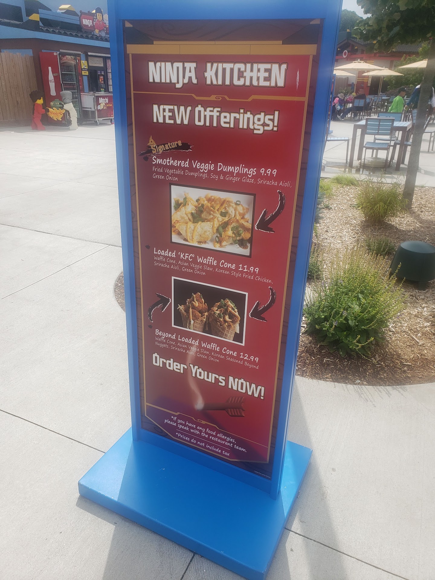 The food here was pretty terrible. Deep-fried chicken in the waffle cone and in the sandwich that was more breading than chicken, and the breading wasn't crispy; it was HARD. The sandwich was marginally better than the cone. The chicken sandwich, KFC waffle cone, and 2 bottles of water came out to $37.80. I fully expect food at theme parks to be overpriced, but not overpriced and terrible. We choked it down because we were starving and in a big group; otherwise, it would have been better to hear somewhere else--perhaps Smokey's Brick-B-Q, which is the only eatery in the theme park that has a half-way...