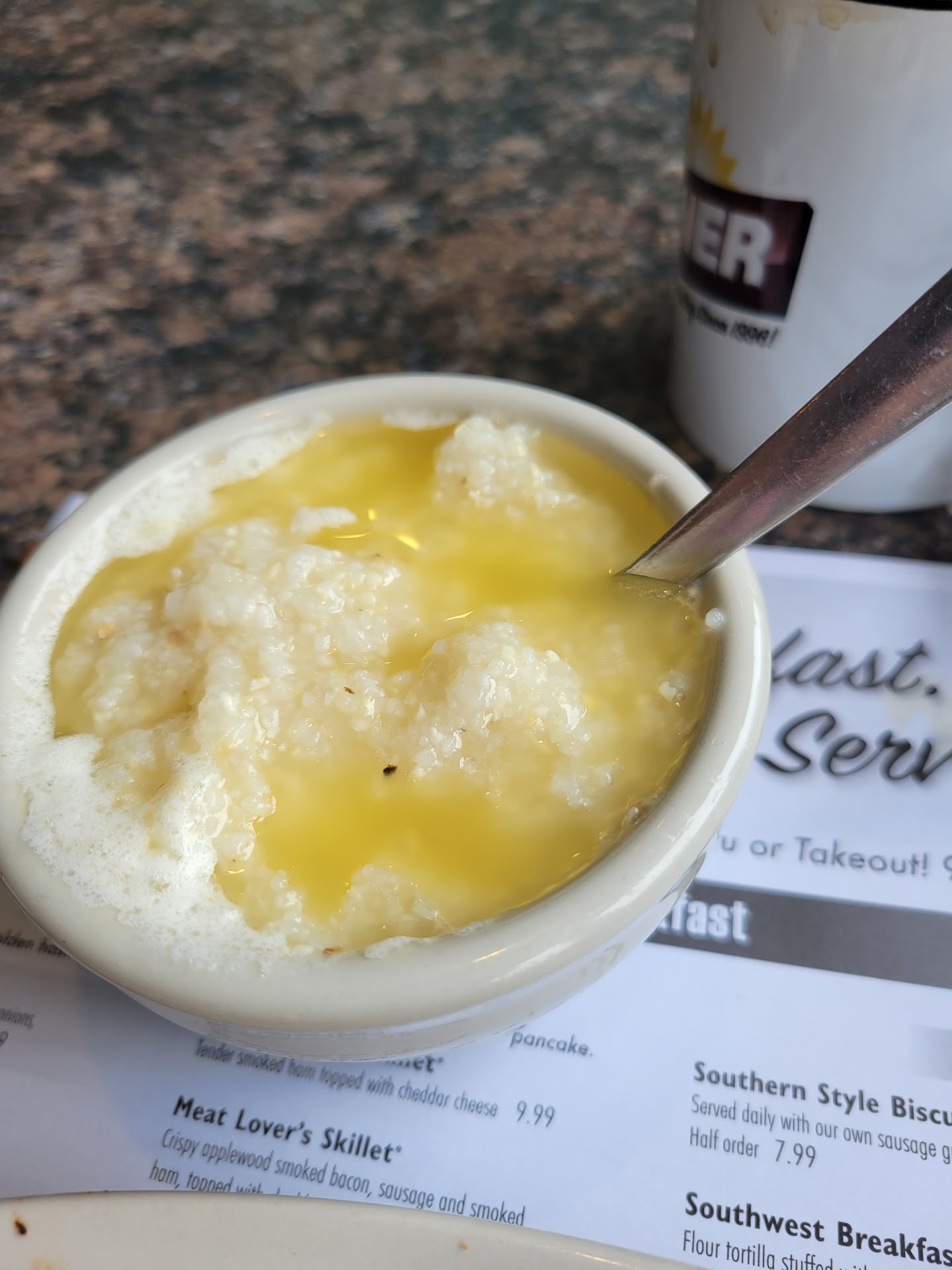 We’ve been meaning to try this place for some time now, so we were in the area and went for the first time. Bad decision. We arrived around 9:30 am and both ordered breakfast. Eggs, American fries, ham, and a pancake for me; eggs, sausage links, hash browns for my hubby. Server was business-like, but not particularly friendly. Food arrived and was lukewarm at best. Pancake wasn’t warm enough to melt the butter. “American fries” was a small portion of lukewarm, dry, overcooked baby red potatoes. I’ve been dining at many different restaurants over the years, and these were about the worst I’ve encountered. Asked server to replace them with hash browns which weren’t much of an improvement. My husband’s sausage links (3) were of the same appearance and flavor of those pre-cooked “brown and serve” links you buy frozen at a grocery store. You’d think at these prices they could serve fresh, genuine links. His hash browns were also lukewarm, not crispy on the outside as hash browns should be. Another employee (a manager?) came to the table and asked if there was a problem. We explained our concerns, but she didn’t seem too concerned with what we had to say. The only item that was remotely satisfactory was the pancake (although as already mentioned, it wasn’t hot). First, and last, time we’ll ever eat...