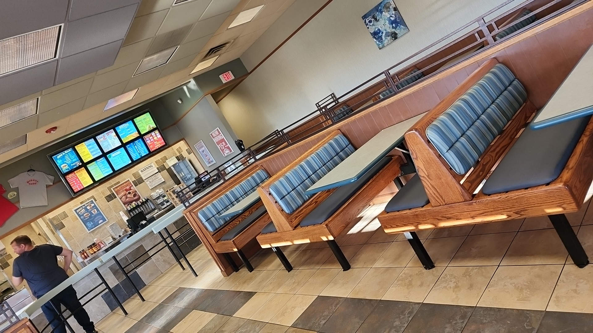 Read moreI usually grab lunch her twice a week, tonight was the first time in a while that I went inside to eat, and by far the WORST dining experience I have had in a while. Our food was carelessly prepared, but beyond that the employees had a movie playing on one of TVs that was turned up loud enough for the staff in the back to hear it. Furthermore the films dialogue was packed with profanity and crude simple minded jokes. definitely the last time my family will be eating here. Appalling that the manager on duty thought that this was remotely appropriate for a dining establishment open...