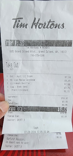 I am so done with Tim hortons , so I ordered yet again medium Oreo ice cap with extra whipped toppings ( in which they charge extra for ). Get up to the window to pay and the lady opens the window and asked me if I wanted whipped toppings and I said “ well of course I do and extra since I paid for it” then she says “ i know” well if you know why the hell are you asking me . And then I get the drink and there is literally a drop of it ( will have picture below ). Tim hortons what are you doing charging this 50 cents after to rip the customer off. 50 cents may not be a lot to you but if I go to Tim hortons everyday and the same location that is 3.50 cents a week , so this is the last straw , and this is not my first complaint and do you think Tim hortons even had the balls to reach out to me and make this right(nope not once) so I hope this gets the word out because I work to hard for my money to throw it out the window , and to top it off I almost forgot I ordered a plain bagel toasted with butter and I go and bite into it and it’s not even close to a plain bagel it’s a breakfast sandwich , so this was a total of 8 dollars wasted on...