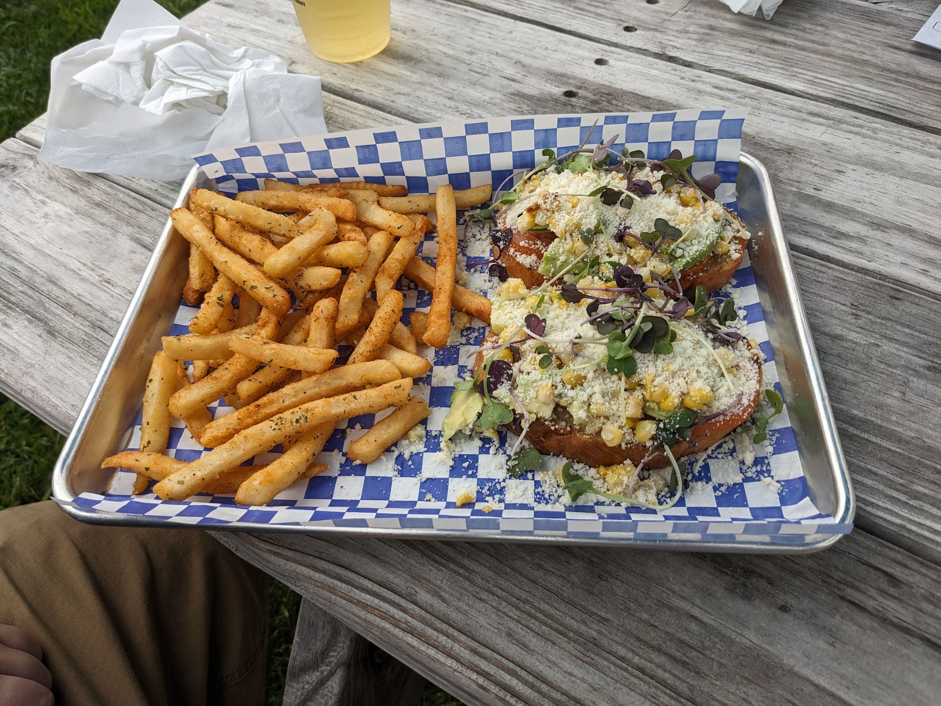 The fries were more heavily salted than any potato I've ever eaten; pretty much to the point where they were almost inedible. The pulled chicken in the tacos was very dry and the sauce that came in the tacos was very very heavily seasoned. It was just not a good combination. We also got some mozzarella sticks which were okay and the burger which was the only food that was actually good.
