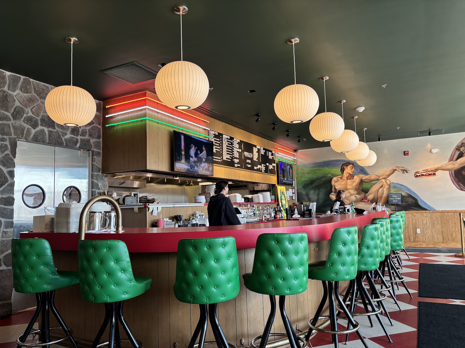 Ā Ā Ā Read moreIām Italian so here is my completely transparent honest review. Itās good. Itās very good. You walk in youāre greeted you either order quick, sit at the bar or pick a booth. The menu is limited and it is pricey a sandwich is going to cost you about 21$, so keep that in mind. If you love Italian food with an open mind and a spin on things you will absolutely love it here. Itās innovative to a degree. Is it like the basement we all grew up in? Mostly, basement and or Italian garage. Same thing. Itās āGreaseā meets Italian basement meets āHappy Daysā meets garage feel. Itās cool. The food is good. The pizza has a twist to it. It was just ok for me. It came out a little on the cooler side pepperoni wasnāt really cooked. I compare it to Jays Artisan pizza. Jayās is still better, but this pizza isnāt too bad. The sandwiches are good. They are ginormous. Super sloppy so get a ton of napkins. And hey, thatās a good thing. The sauce is good, meatballs are way too garlicky for my taste. And yes I am Italian I love garlic but this kinda tipped it over for me. Still amazing tho. Their breaded chicken is incredible. The bread amazing. As an Italian this is my honest review. Yes we will continue to keep coming back because we support each other and this is absolutely amazing food and scenery. These people should be very proud of what they created. They put their heart and soul into this place and it shows. One more thing, the music I expected to hear more Frank, mixed w Eddie Money. If Iām going back in the day this is what I absolutely remember. Those memories will come back when you go here I promise you. Also add decks of cards to the table w checkers and itās perfect. Xo Update: this place is just way too expensive. And prices have gone up. We went here a second time and itās just crazy the prices. In this economy it just...