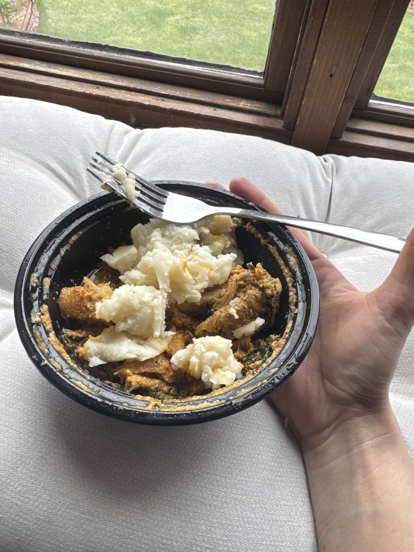 I am very disappointed the Fufu felt like a scam that is the only thing thatās portion is super small and it also tasted and felt EXACTLY LIKE INSTANT MASHED POTATOES. I expected something doughy and AT LEAST A TINY BIT yammy in flavor since he said itās yams I knew it isnāt supposed to be like super flavorful but I definitely expected something atleast a little doughy in texture. I feel like they are calling me stupid like I canāt tell the difference between mashed potatoes and something else entirely.but it be never had fufu so I canāt say that with complete confidence but Itās the EXACT same flavor and consistency as instant mashed potatoes and why is the portion SO SMALL for the fufu but the other meals are huge itās like you hate us for wanting to try something different and it made me really disappointed. AND IT WAS MORE EXPENSIVE ONTOP OF BEING TINY PORTIONS compared to other meal options. I definitely feel I was scammed and Iām sad because the other stuff looks actually good and I almost got that instead with the fufu on the side to try. but now I donāt want to go back. I have small hands btw and look at the bowl compared to the fork. Itās tiny I paid $20 like youāre losing business guys what are you...