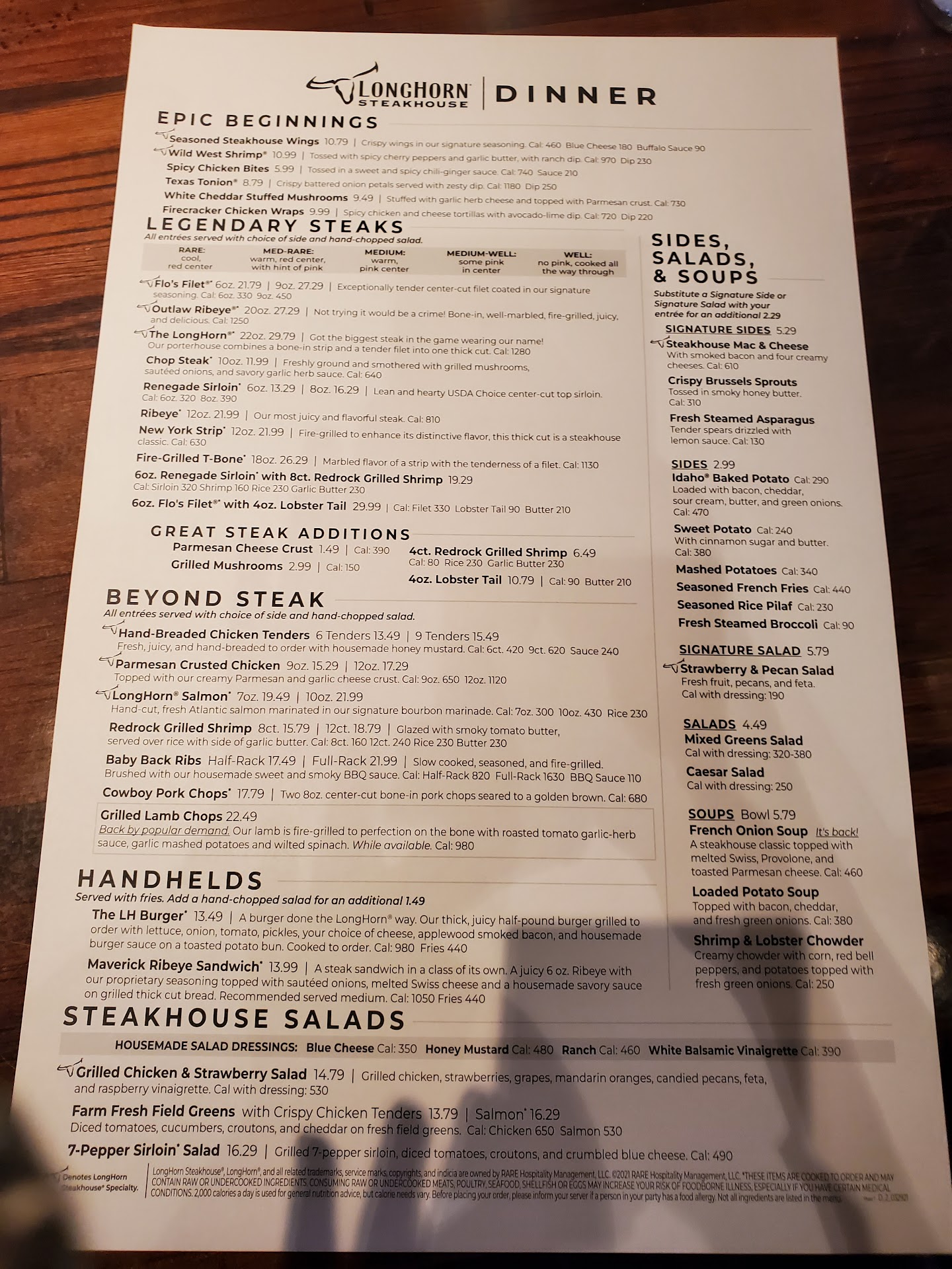 I normally love this place but tonight I ordered a rather large meal and 2 of the items were steak and parm crustedchicken combos with parm crust alsoon my steak. When I got home I realized the steak did not receive the parm crust. In fact they didn't even charge me for it which was crazy to me cause I said it 3 times, so I called back to let them know about it and made sure I was speaking with the same women who took my order. She asked what I would like to be done and I said "well honestly I really want my steak with the parm crust made, I ordered this meal specifically cause my friend said I'm not too big on steak and I said yo we're getting longhorn, you gotta try the steak with the parm crust. 70 dollar order later the one thing we wanted mostly we did not get." She says okay hold on a sec and grabs the manager. I hear them talking and her say that she doesn't remember me saying it but I claim to have said it, so then the manager stresses again did he say it and then the manager is on the phone with me and asks me the same thing. I act as if I didn't hear them speaking and explain the situation but in more detail. Then once I'm done I get put on a hold, and 10 minutes later I hang up cause no one ever came back to the call. I call back, trying to place an order and 10 minutes later hung up again called back still nothing. So literally I couldn't even get through to order a meal, say I was hear for a meal, or speak to a "steak expert" none of the options worked no one answered with 2 and 1/2 hours left till close too. I would of even given my damn steaks back. Like throw em out, let an employee take em Idc I don't want extra food I want what I ordered. I called specifically for it and I mention it again 3 times in the call. When I initially said the combo, when she sacked for my Temps and reiterated again both meats eith parm crust a 3rd time 🤦 if she read the order back to me then I probably would of caught it too...