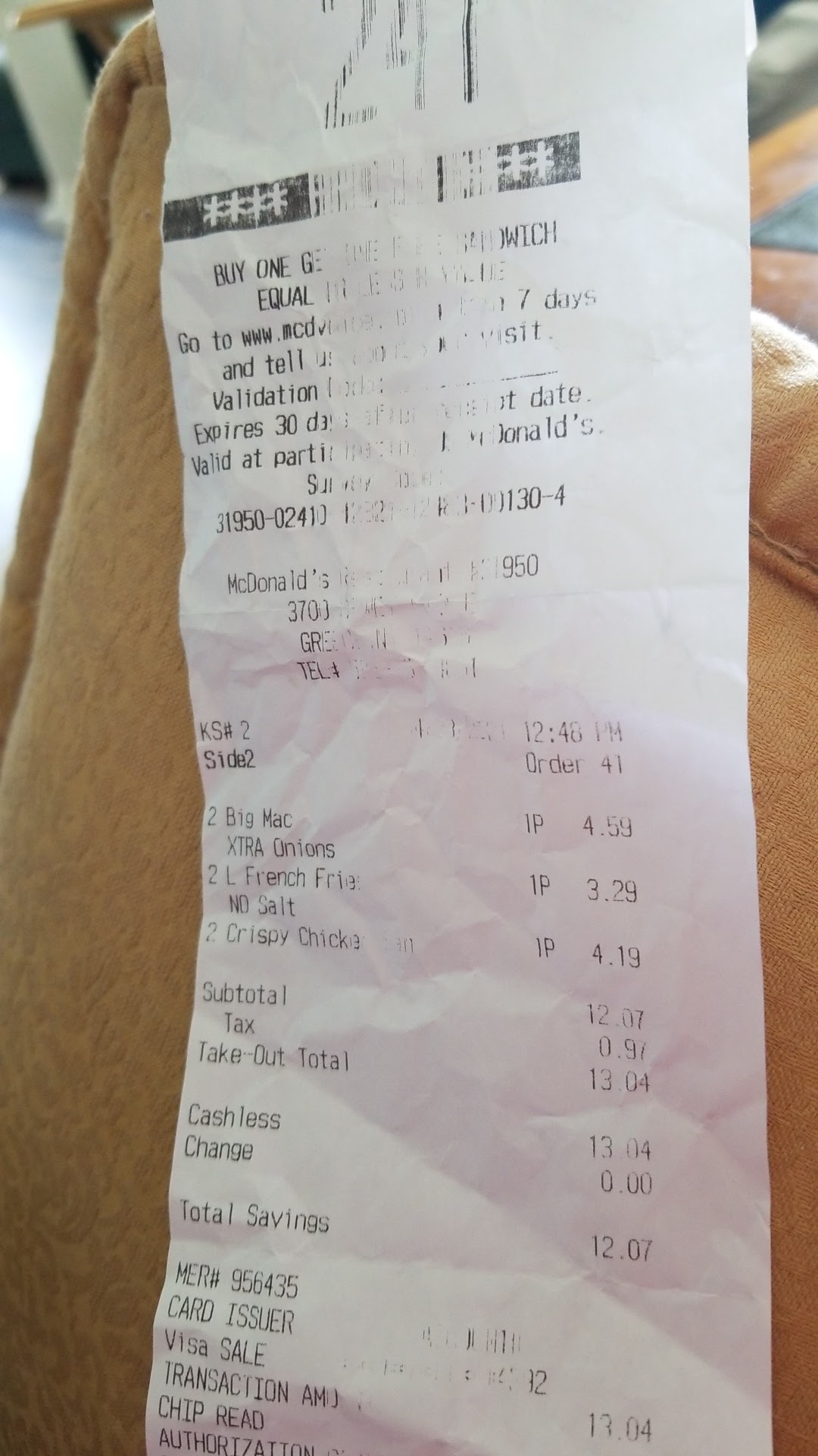 Read moreIts off I don't go to McDonald's, but seeing as you want me to review it. I javent been to a McD in 3 years.. The last time I went was about 4 or 5 before that. I only stopped in thinking " hey I'm drunk, this can't be as bad as I remember. Right?" Wrong... Wrong as all get out. I figured screw it. Lets go with the classics. 1 chicken sammie, and one cheeseburger. My drunk self was ready, but my soul was not. I took a bite of the chicken sandwich and tried not to wretch. I immediately spit what was in my mouth into the wrapper, then dumped it into the Wal-Mart's parking lot. I said to myself "self there is no way the burger with cheese can not be anywhere as bad" I mean it is in essence a cheeseburger, pickles, mustard.. Repeat scenes 1-3, bite, spit dump. Never Will I ever again. Now I KNOW you are thinking " how could he even remember this if he was drunk?" I remember because as I slowly walked away with a hole in my soul I saw the rats of the sky devouring what I had left only to begin falling over in pain one by one as I distanced myself from the horror.. I have never felt so bad about seagullacide in my life. It still haunts me...