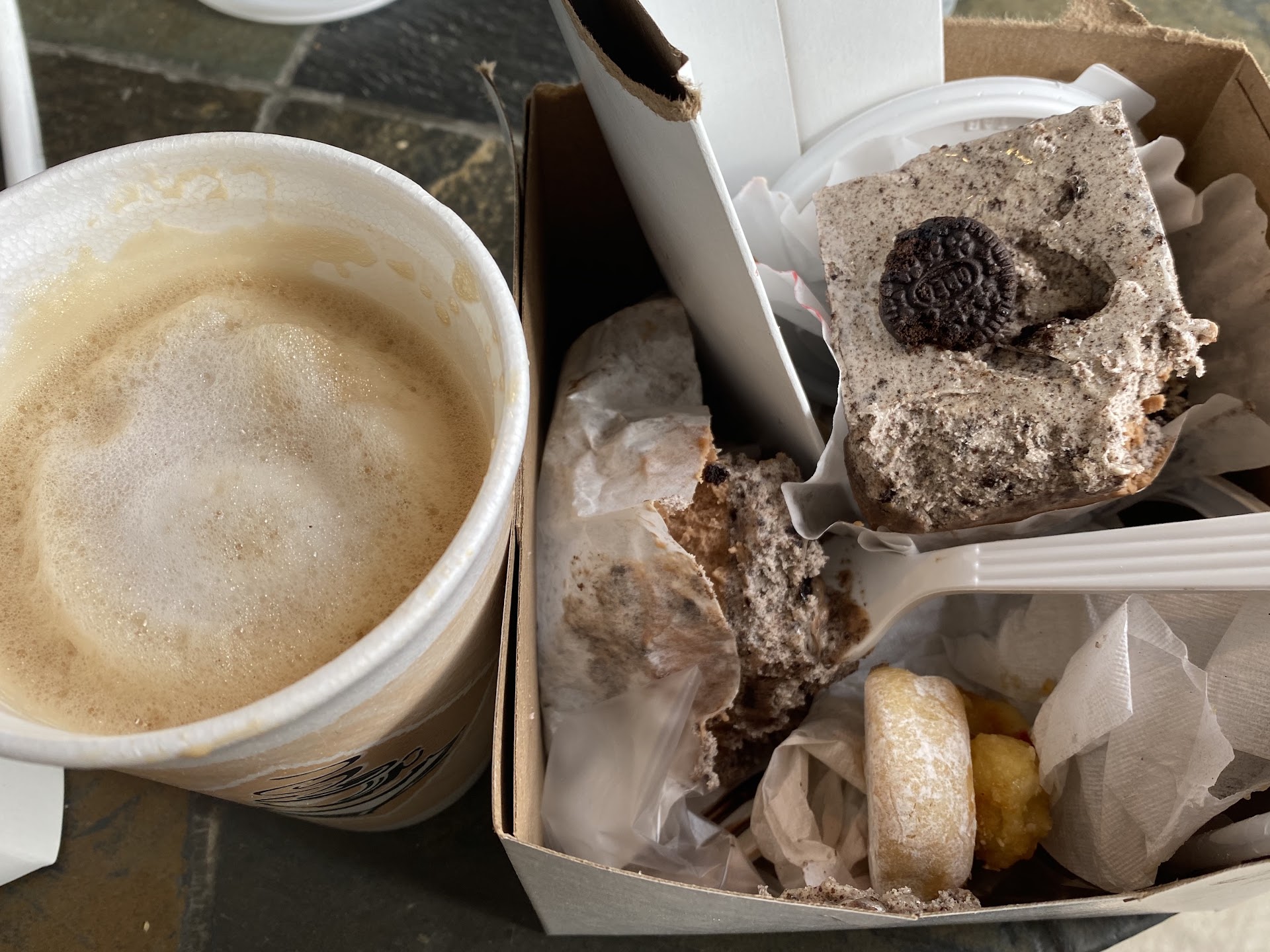 Read moreWe stopped at Oriens Café on a Sunday afternoon for gelato based on a friend's glowing recommendation. Although there was no line, we waited several minutes for two employees in a back room to finish their conversation before they begrudgingly acknowledged us. We each ordered a gelato to eat at the café and a pastry to take home. The server seemed impatient and annoyed when we asked a couple of questions about the gelato flavors and the pastries. We appreciated the shaded tables outdoors, where we enjoyed our gelato without feeling rushed. We each had two scoops of gelato: cannoli (meh), magic candy bar (or cookie bar, maybe? -- it was okay), strawberry cheesecake (it tasted like fake strawberries and red food dye) and peanut butter chocolate (which was excellent!). Three things surprised us about our visit: 1 - The employees were not at all courteous. Despite the friendly banter we attempted, they made it clear they were annoyed at the inconvenience of having customers. 2 - The small gelato cups -- and they're SMALL -- were only half-filled. They would be more than plenty if the gelato was flush with the top of the cup, but for a half-filled cup, they were quite overpriced. 3 - The café desperately needs a good cleaning. Despite no customers in the café, there was trash on nearly every table and everything -- tables, counters, trash cans, menus, pastry cases -- looks as if it hasn't had a thorough wipe-down with hot, soapy water in quite a long time. There's just a visible layer of dusty grime everywhere.